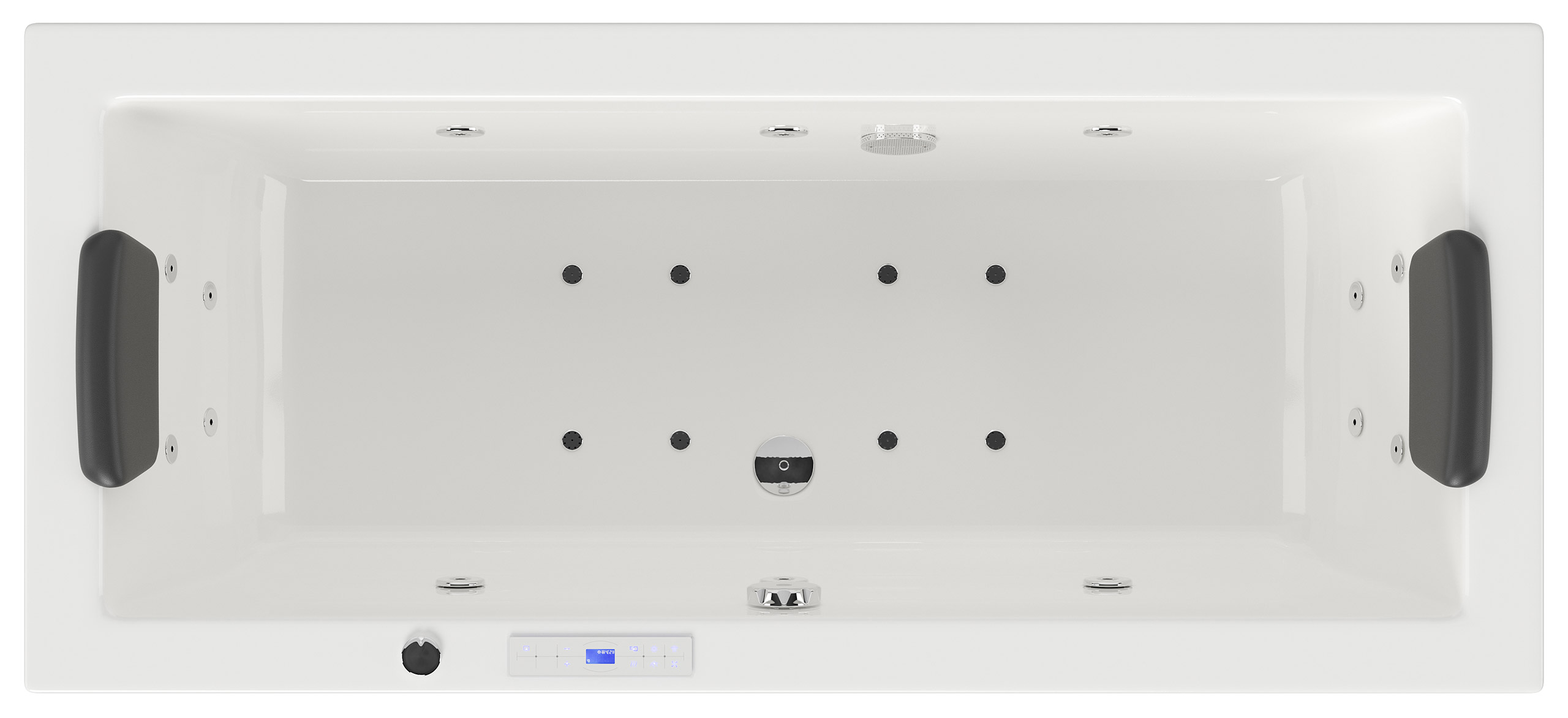 Vorteile: Dezente Strahler seitlich. Automatischer Farbwechsel mit gleichmäßiger Wasserbeleuchtung. Intensive Farben leuchten unter Wasser. Entspanntes Baden mit Chromotherapie.Massagefunktion: Düsen-Ausstattung