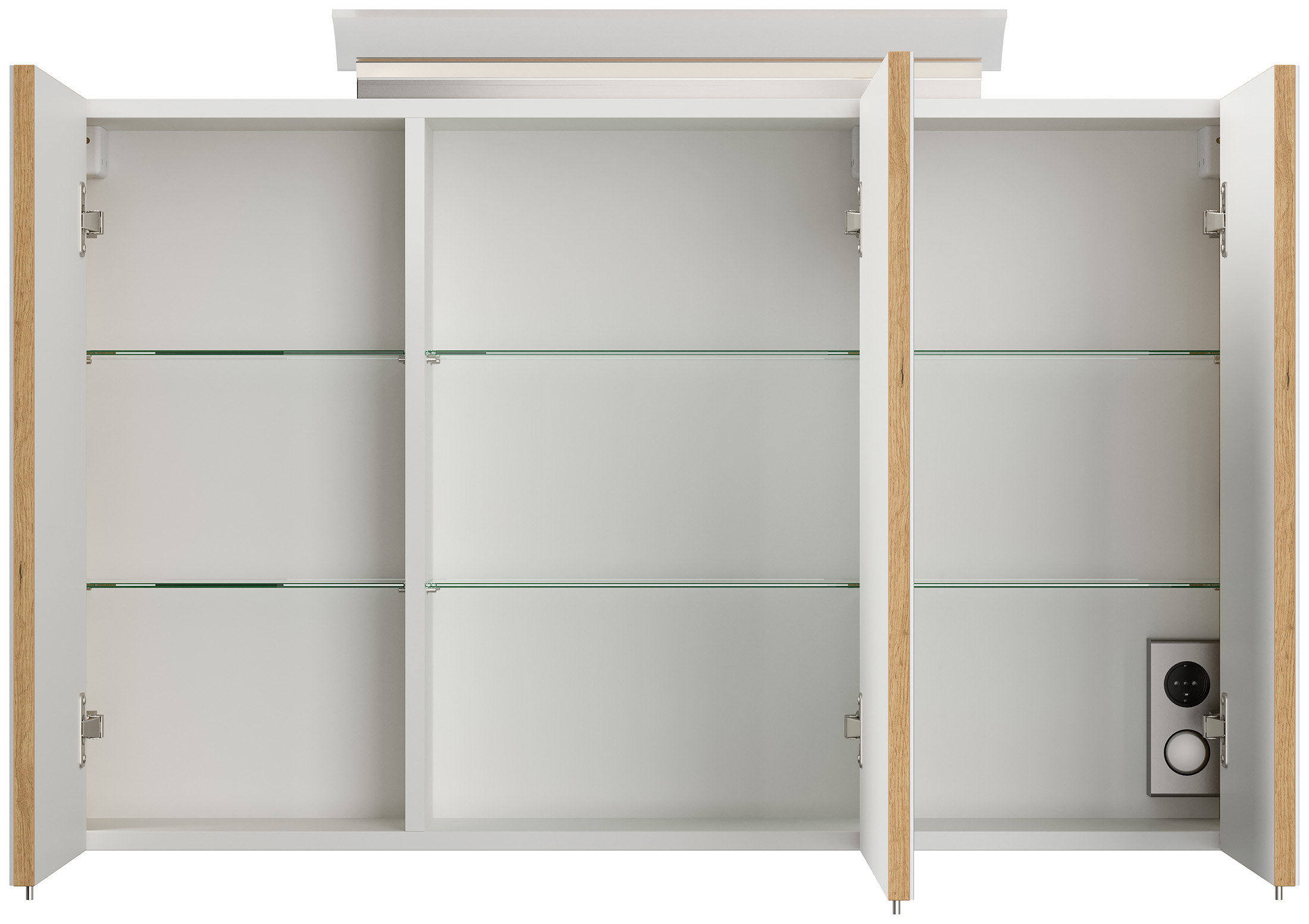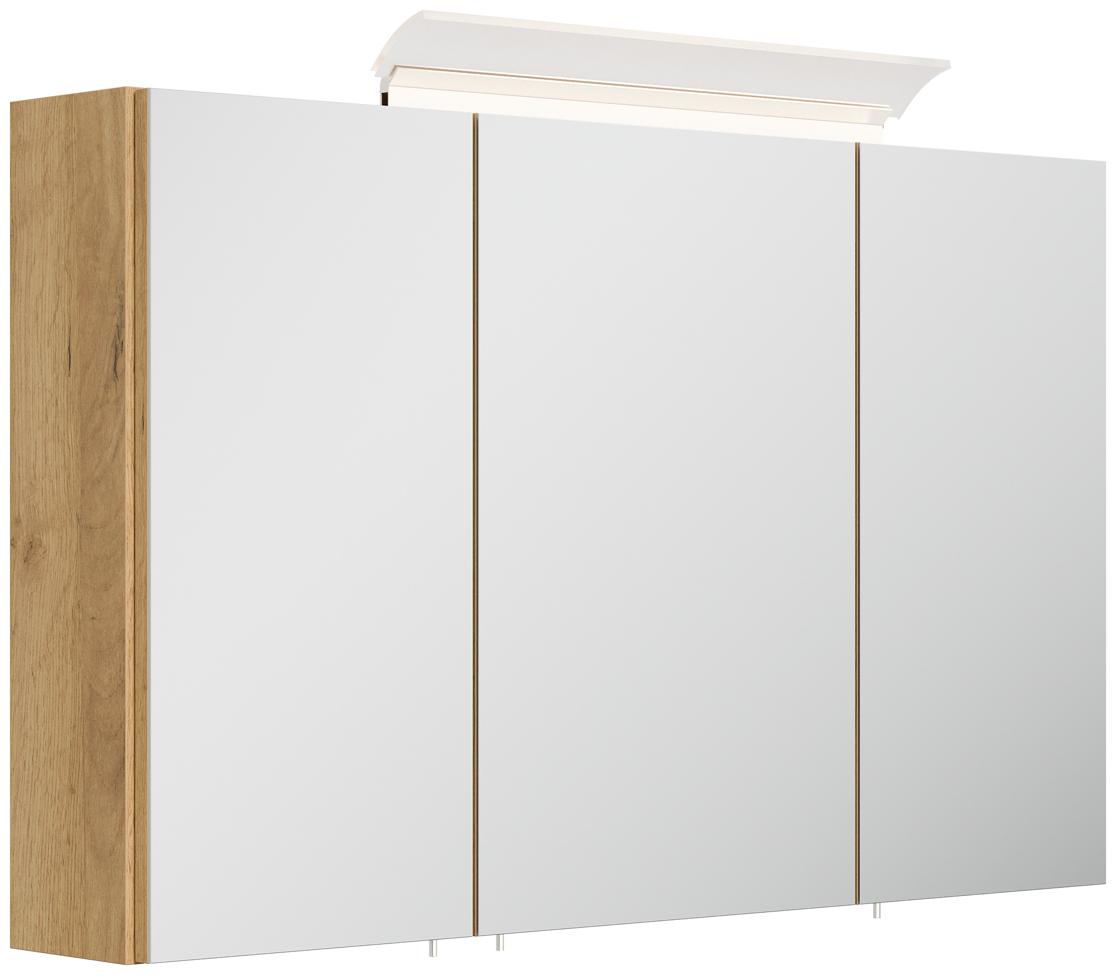 Spiegelschrank 100cm inkl. Design LED-Lampe und Glasböden eiche gold