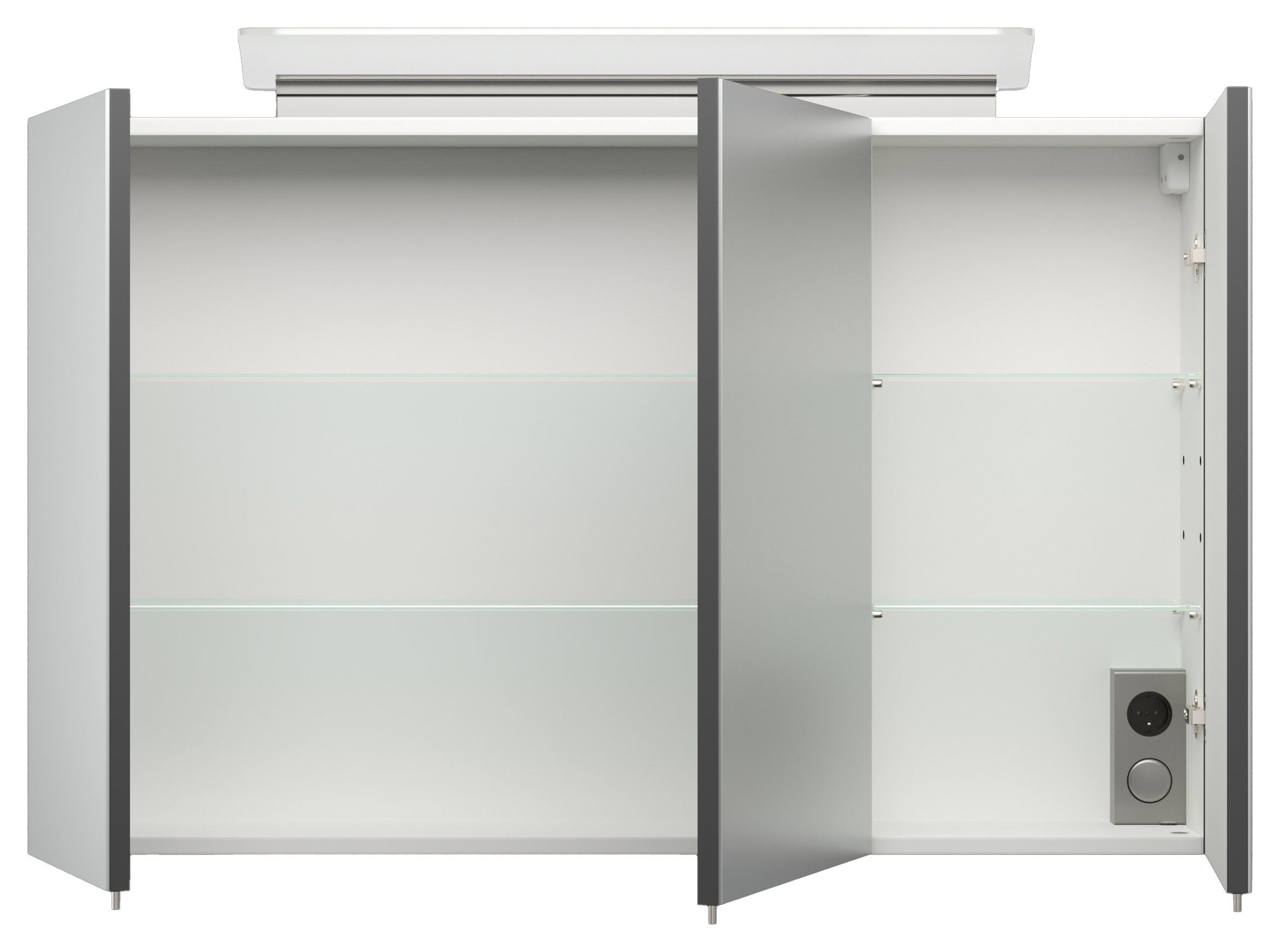 Der Spiegelschrank mit 100 cm Breite bietet eine ideale Kombination aus Funktionalität, Stauraum und modernem Design. Drei großzügige Spiegeltüren mit Soft-Close-Funktion ermöglichen komfortables Öffnen und Schließen. Im Inneren sorgen mehrere Glasböden für eine übersichtliche Aufbewahrung von Pflege- und Badaccessoires. Die integrierte Design-LED-Beleuchtung liefert gleichmäßiges, angenehmes Licht und unterstützt die tägliche Pflege. Dank hochwertiger Verarbeitung und praktischer Wandmontage ist dieser Spiegelschrank eine langlebige und stilvolle Lösung für moderne Badezimmer.