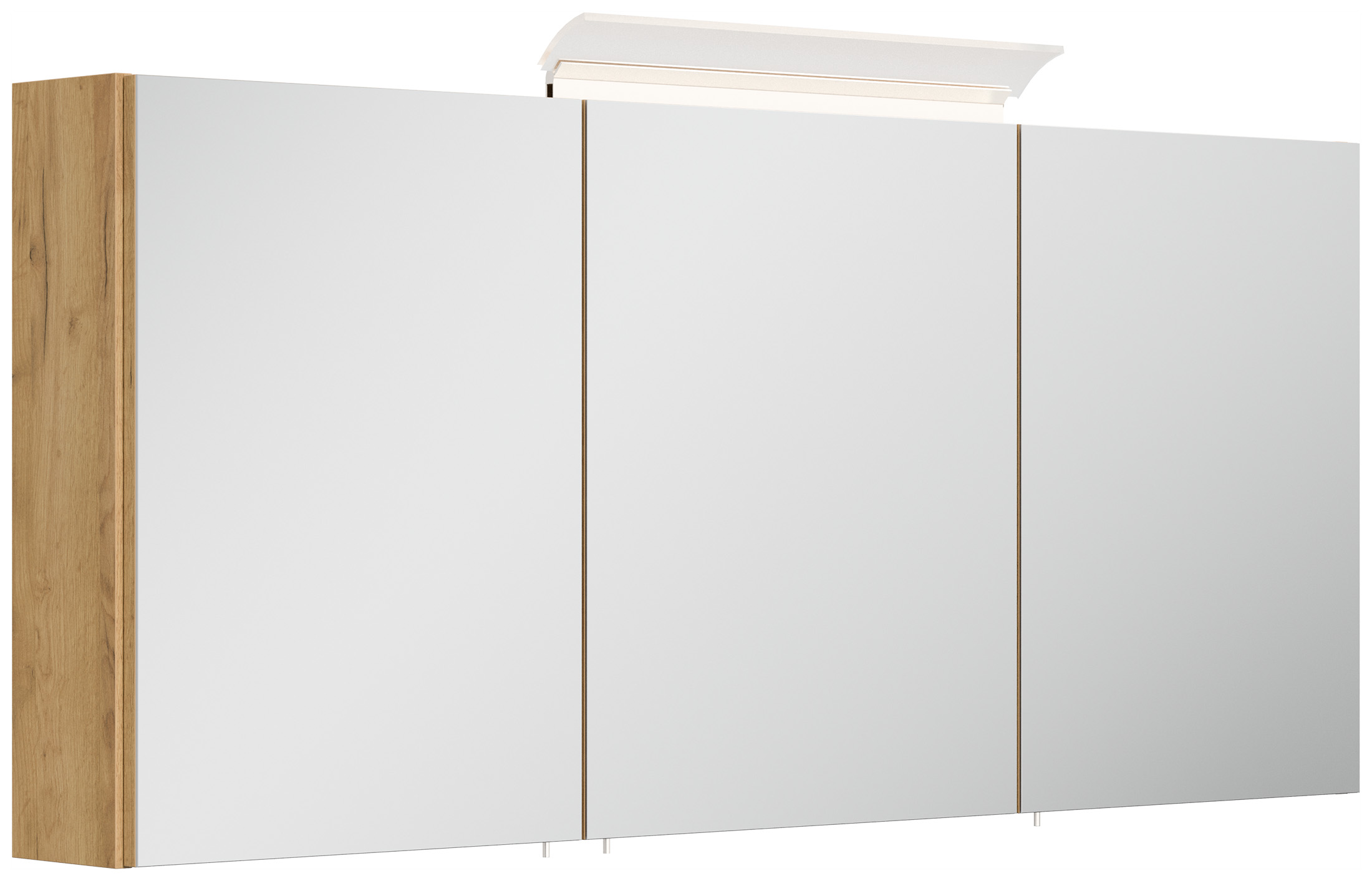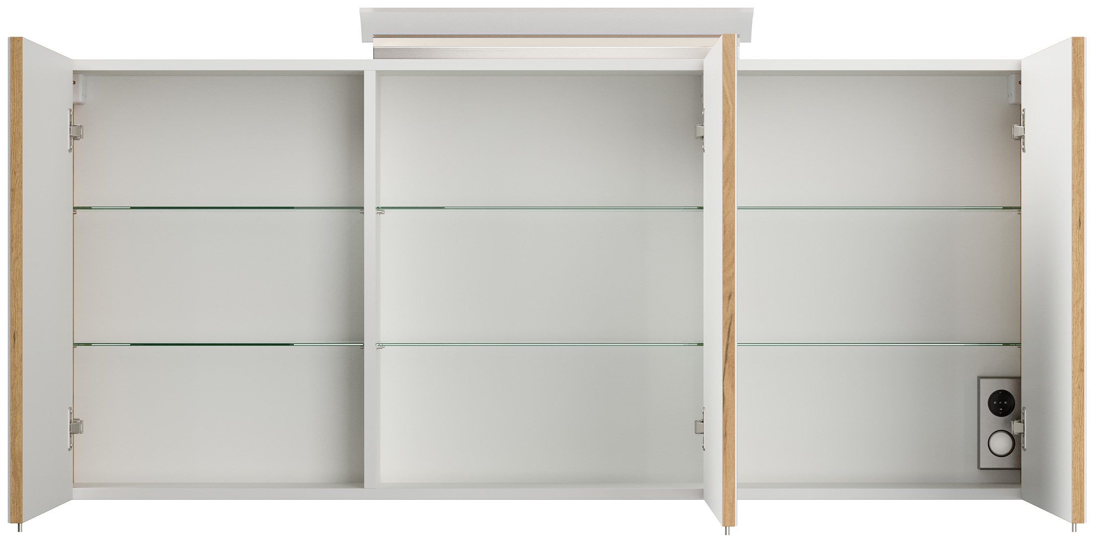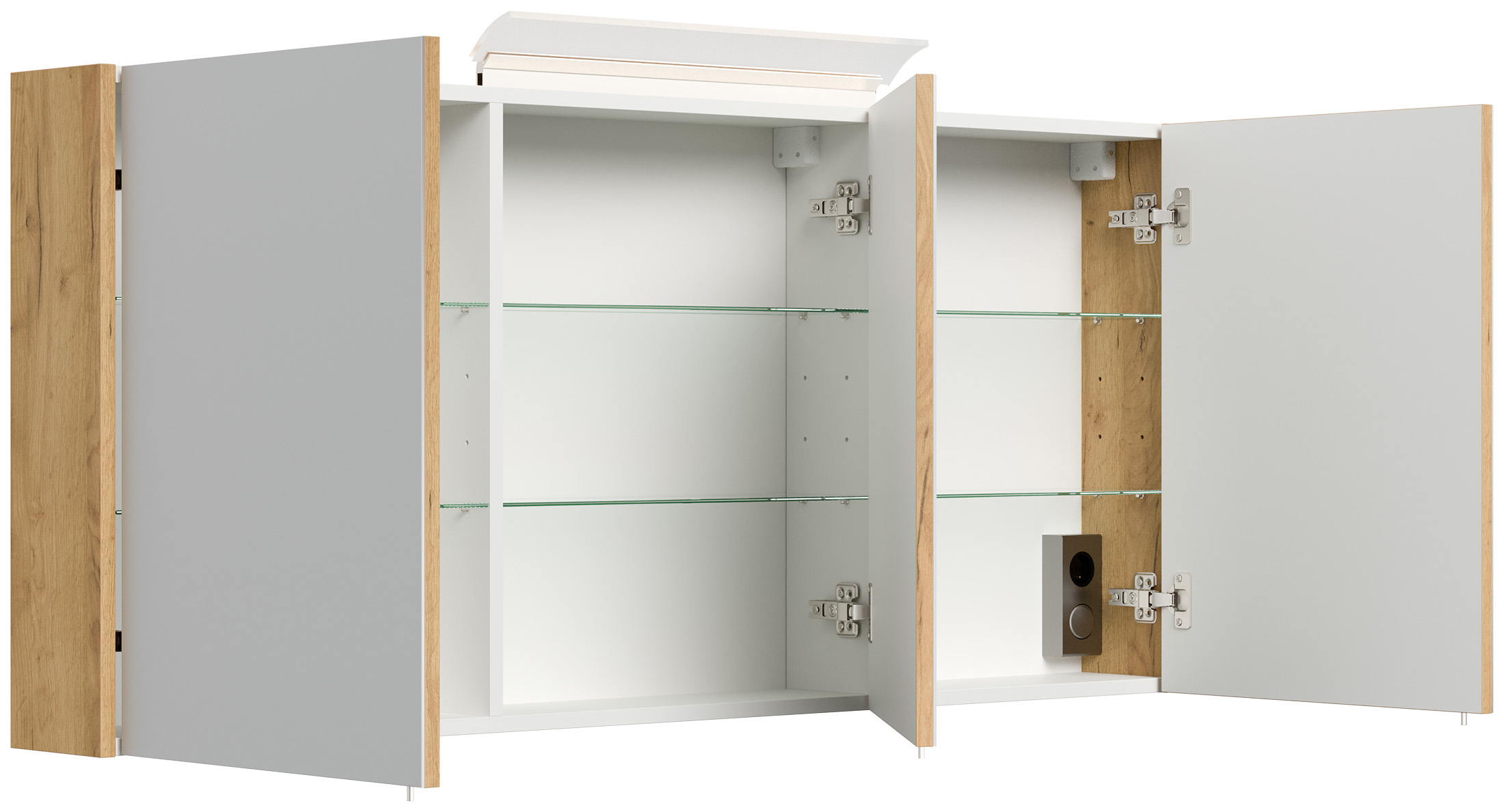 Spiegelschrank 140cm inkl. Design LED-Lampe und Glasböden eiche gold