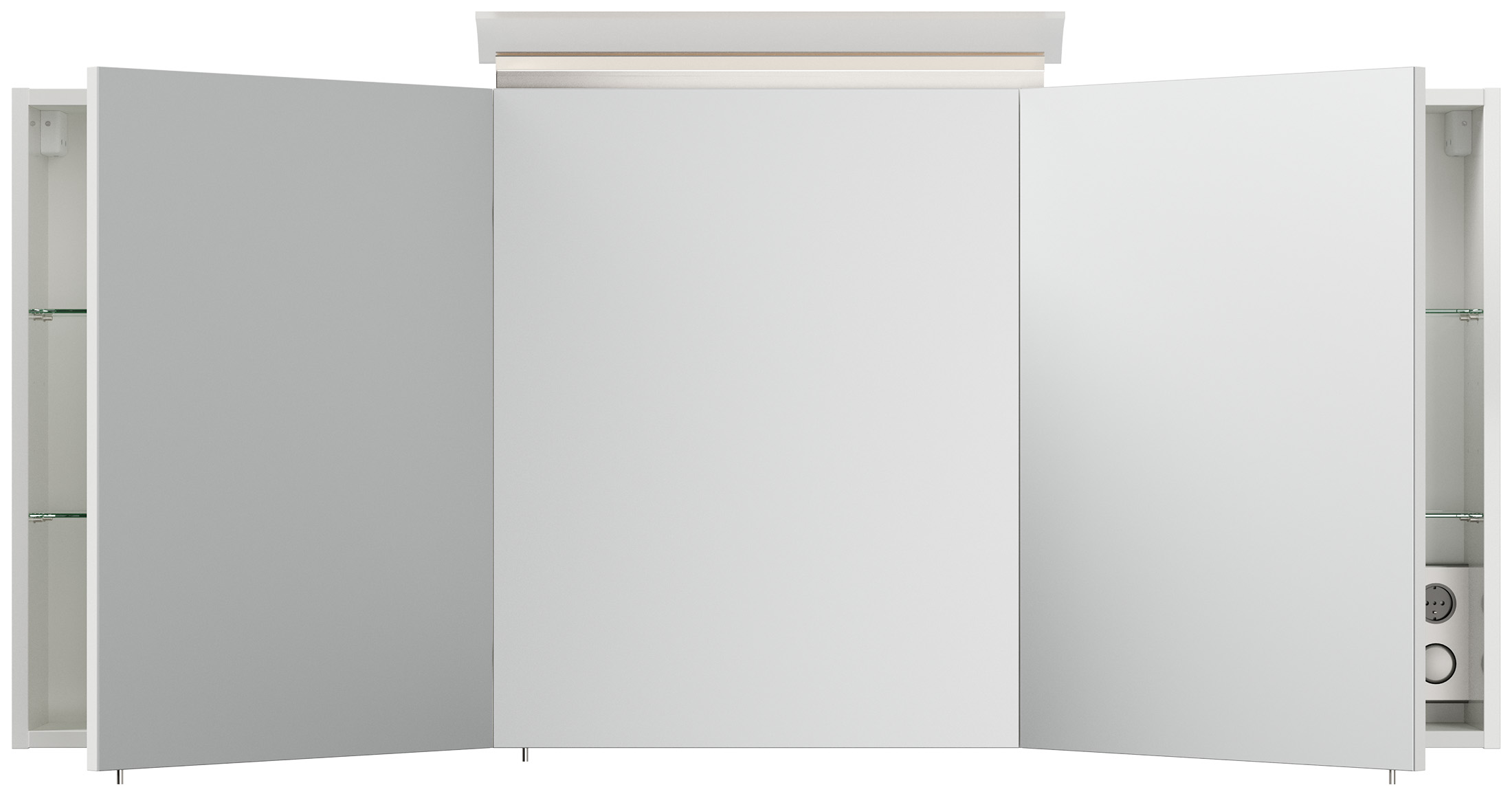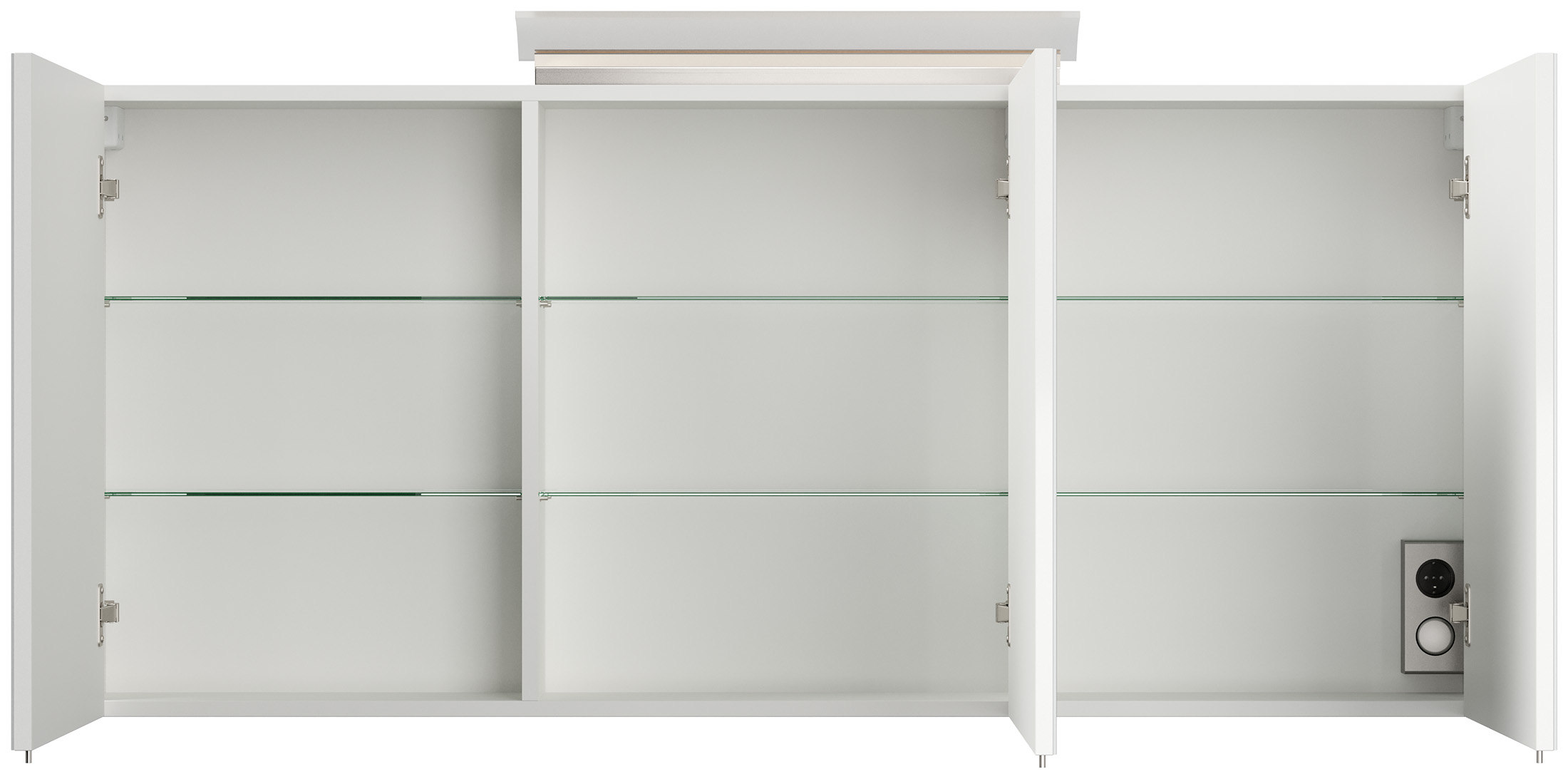 Spiegelschrank 140cm inkl. Design LED-Lampe und Glasböden weiss hochglanz