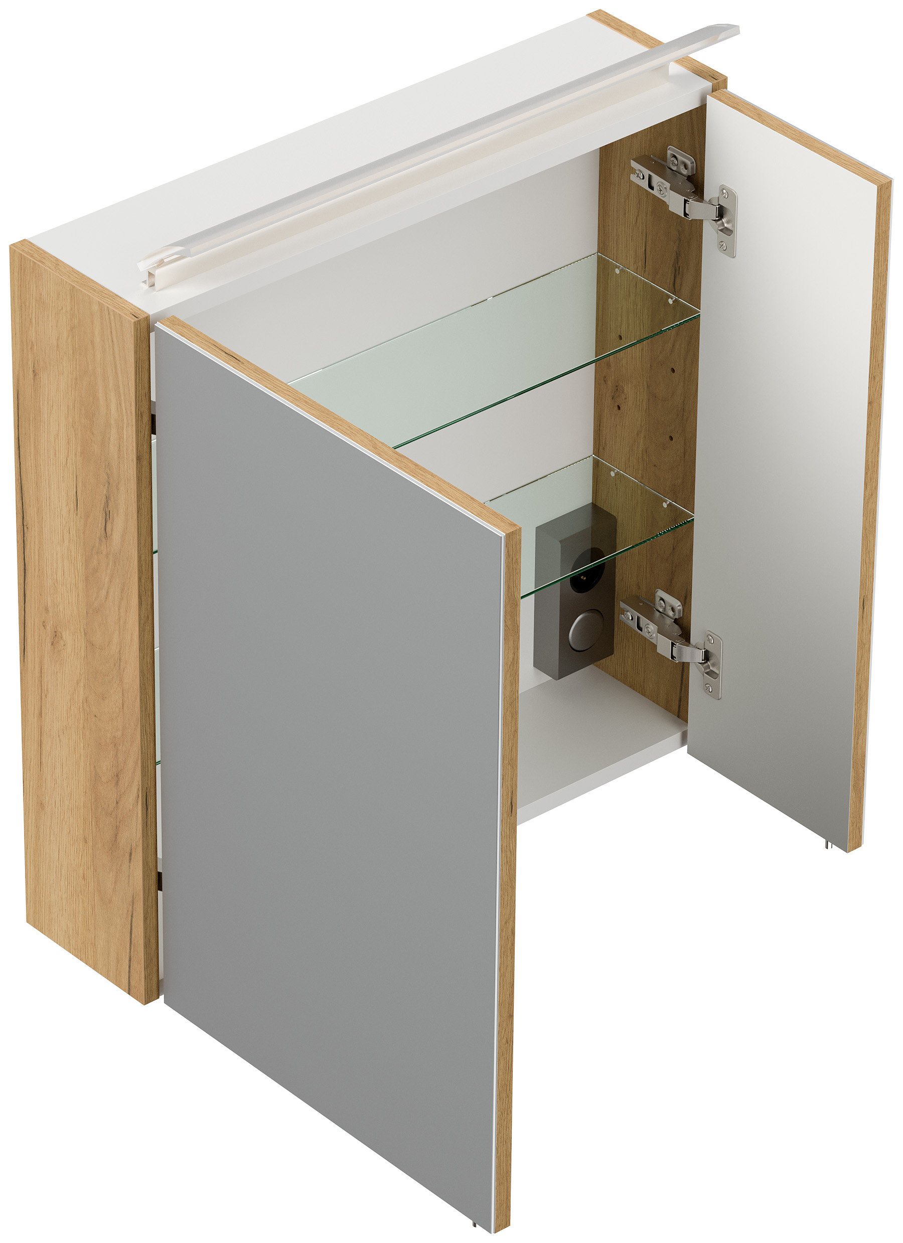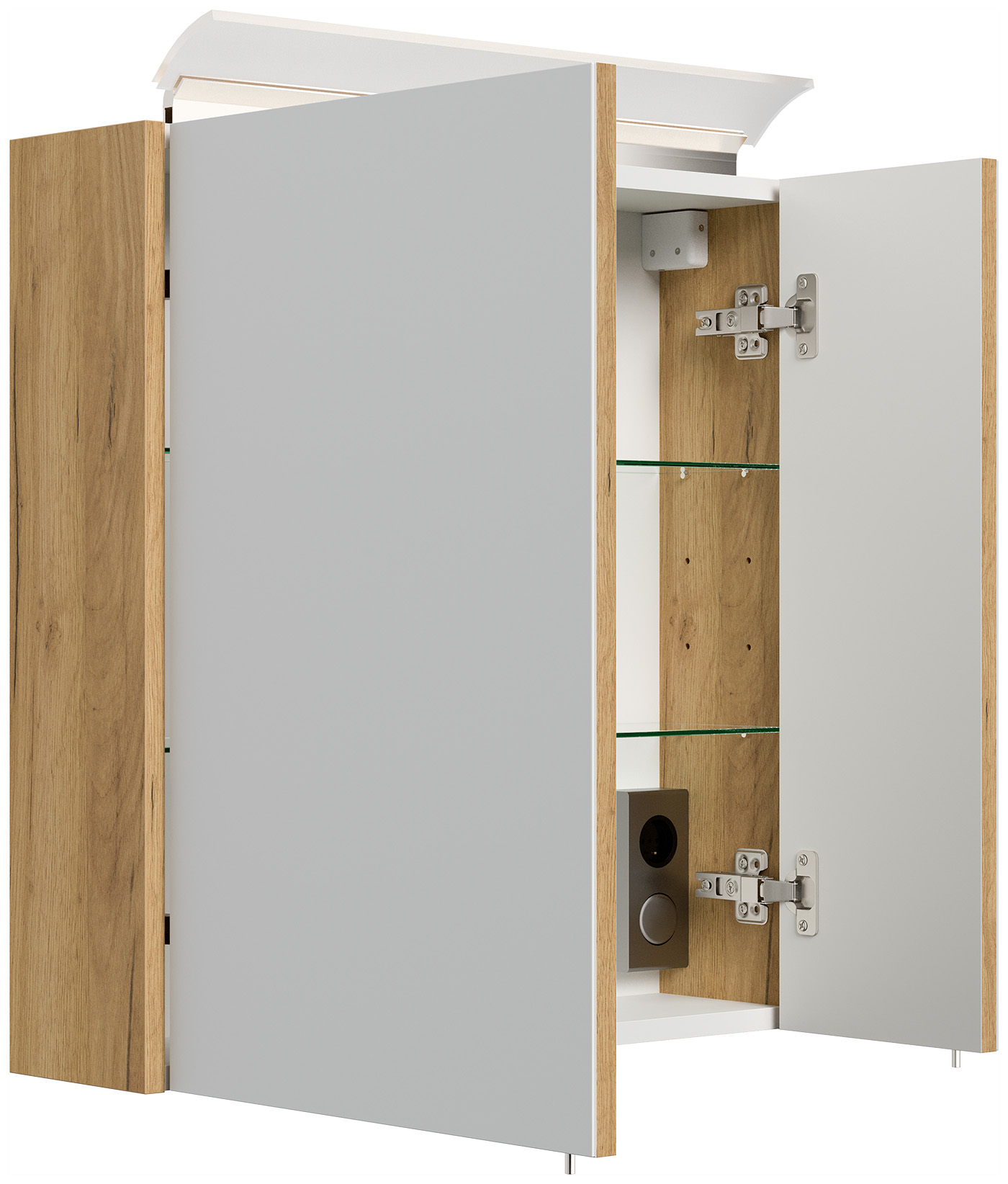 Spiegelschrank 60cm inkl. Design LED-Lampe und Glasböden eiche gold
