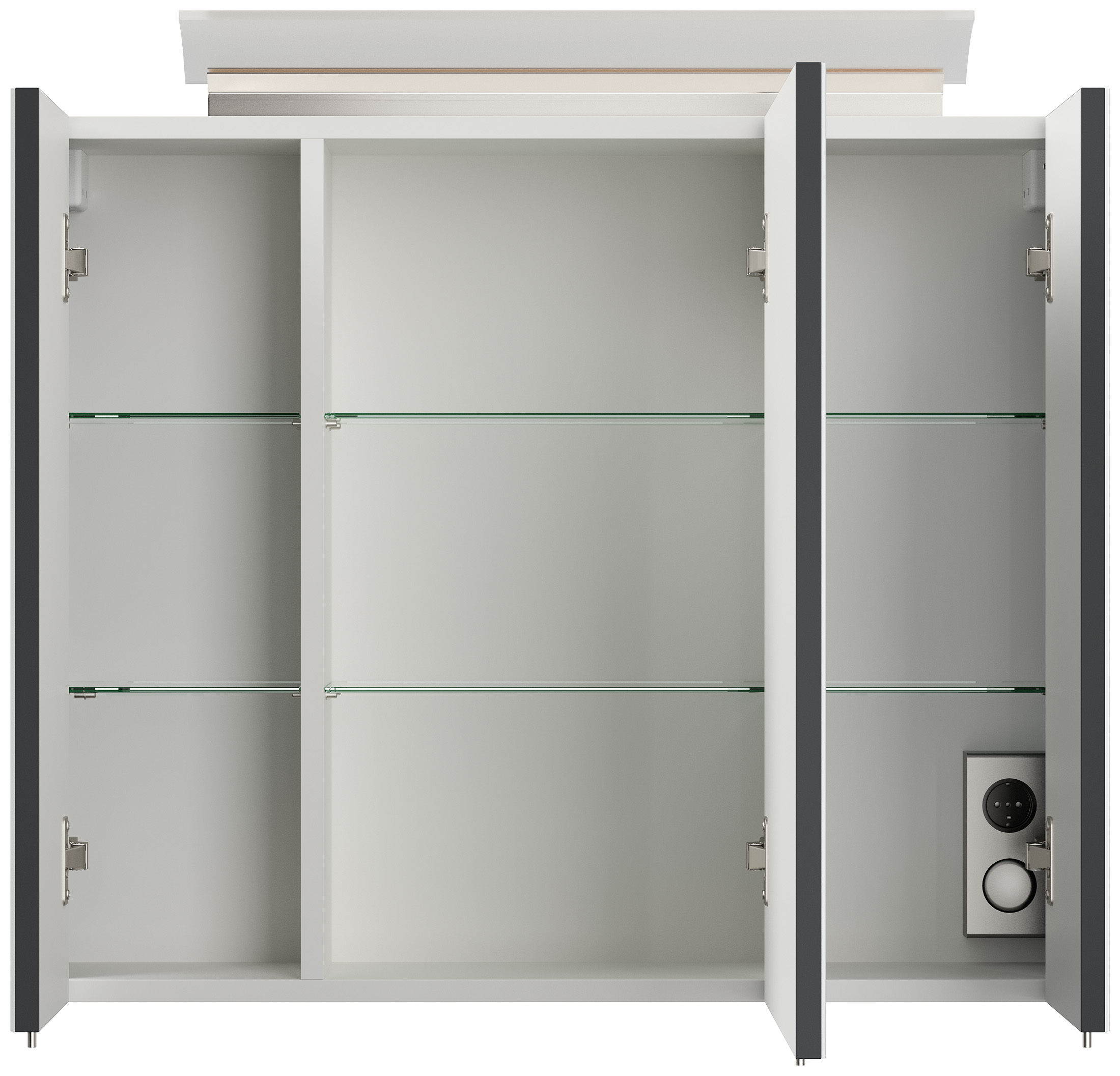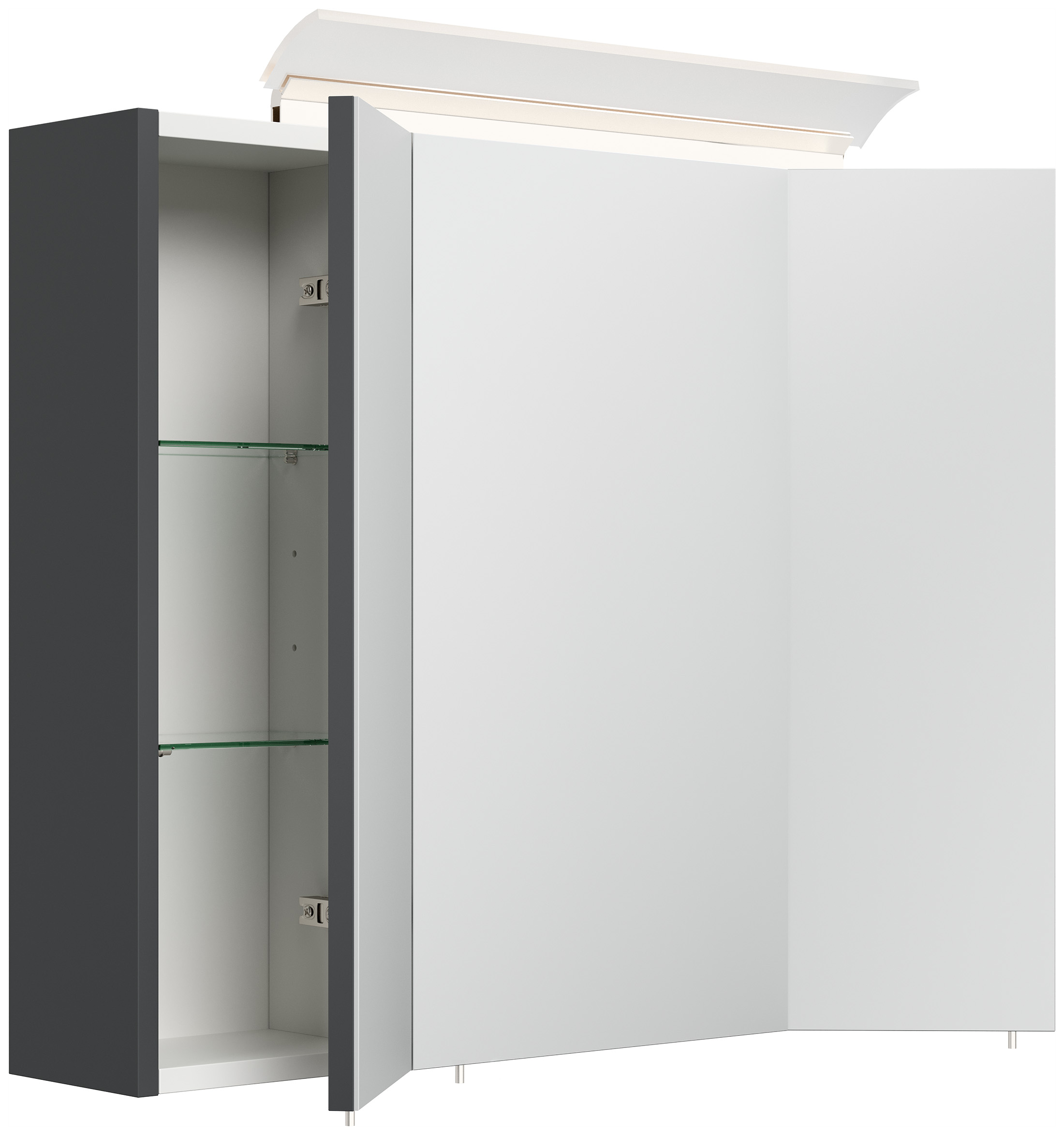 Spiegelschrank 75cm inkl. Design LED-Lampe und Glasböden grafit