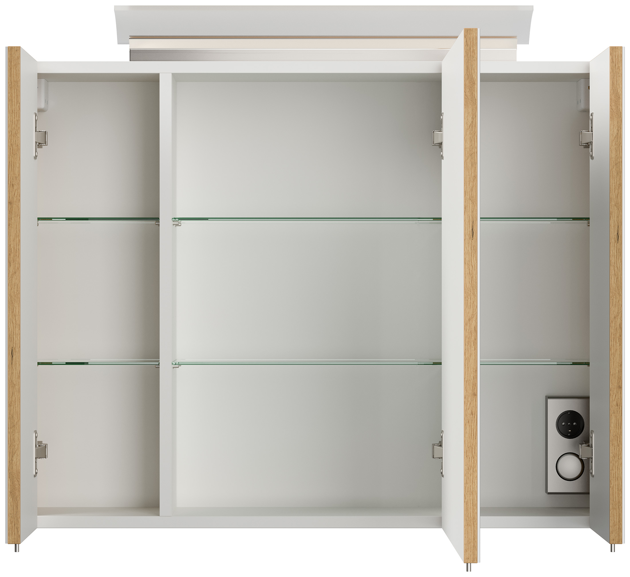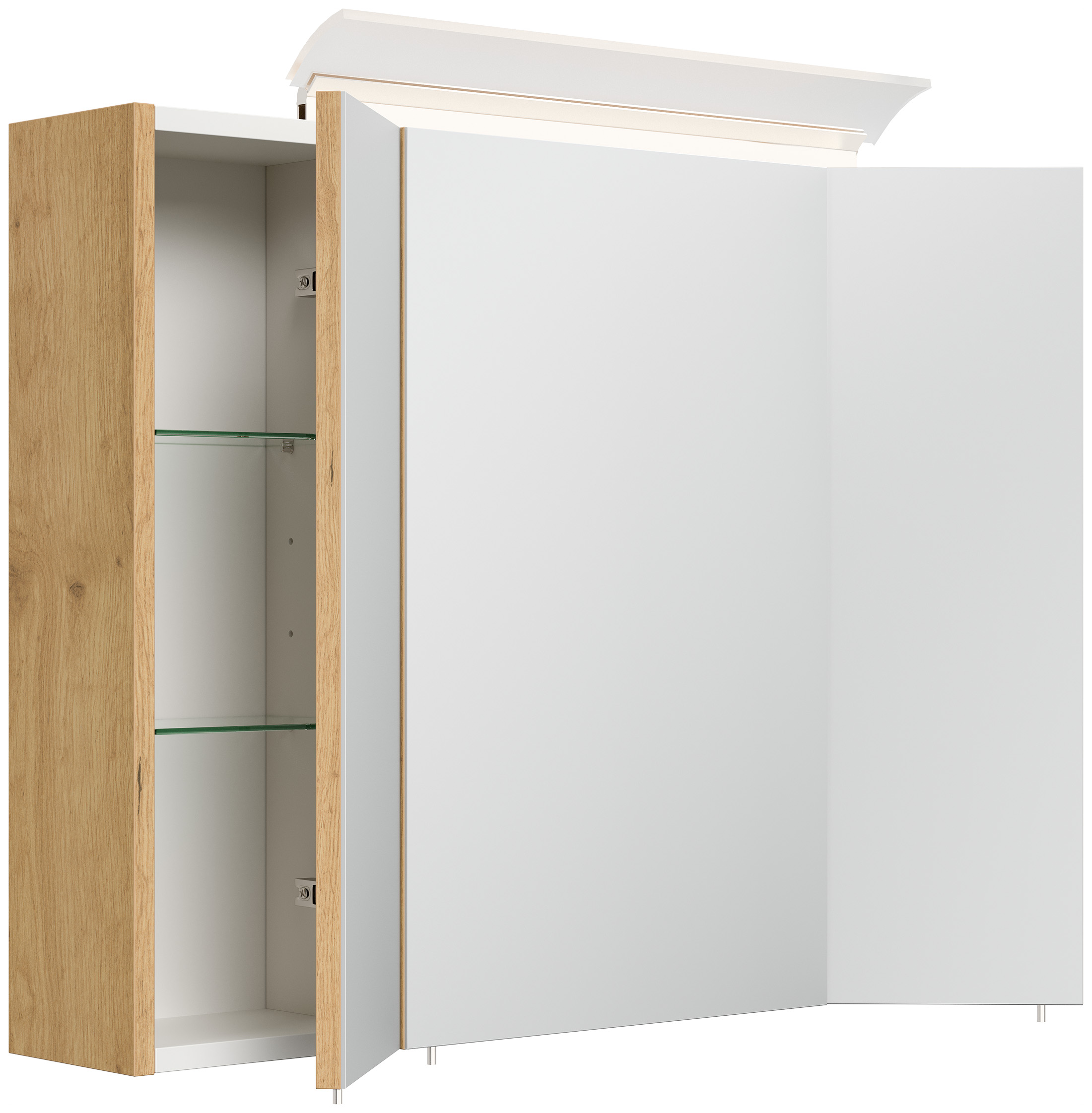 Spiegelschrank 80cm inkl. Design LED-Lampe und Glasböden eiche gold