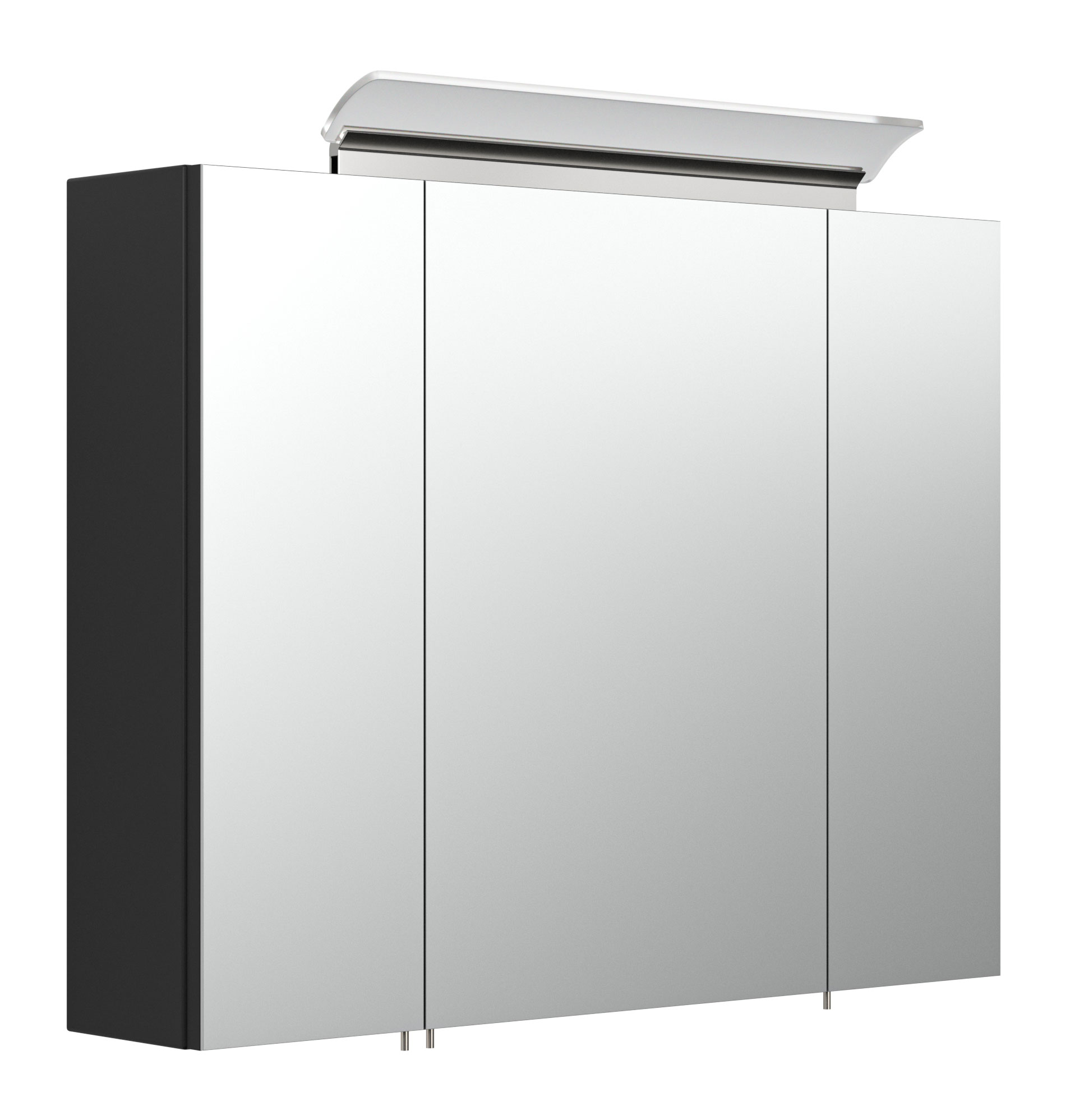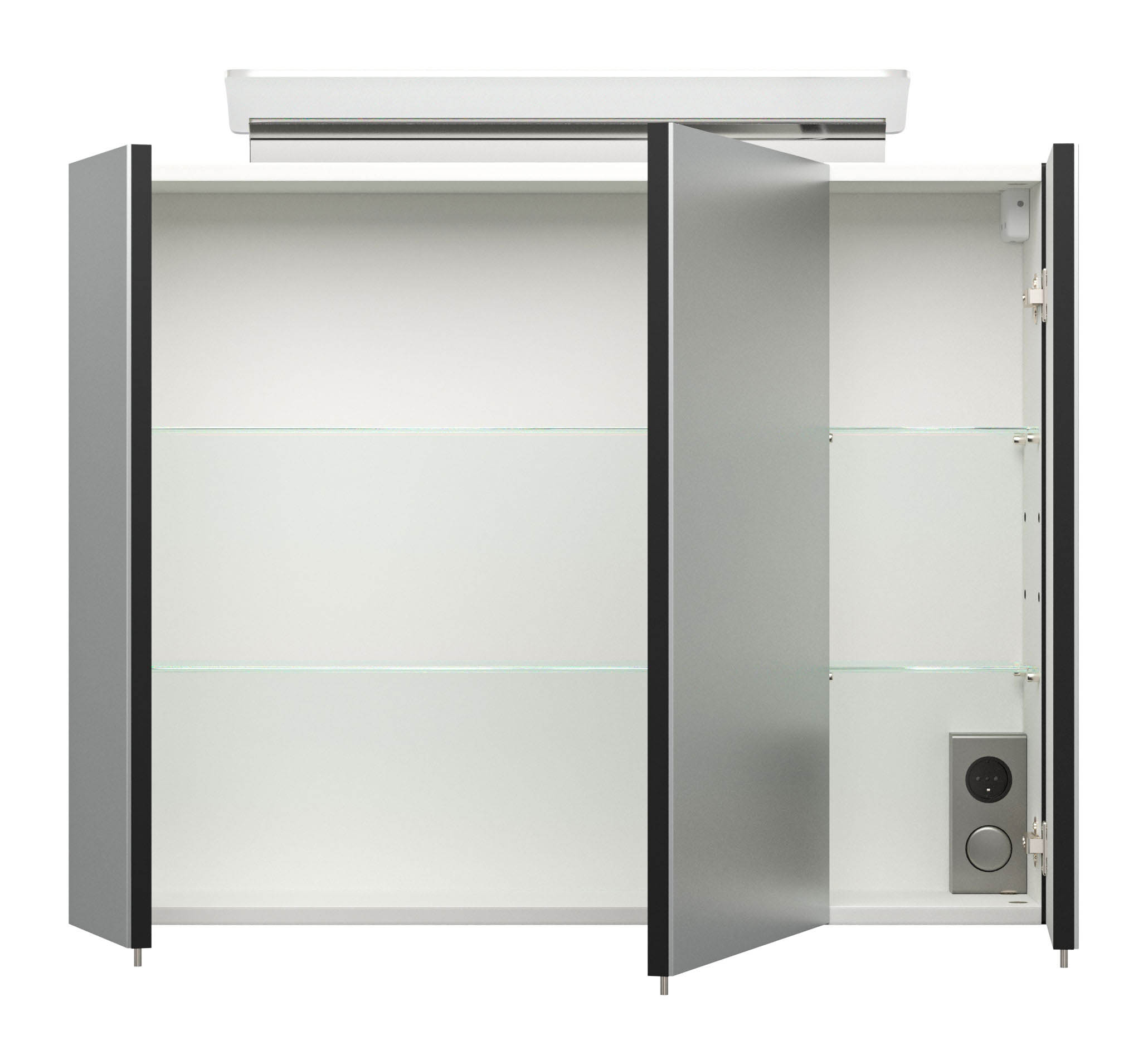 Spiegelschrank 80cm inkl. Design LED-Lampe und Glasböden schwarz