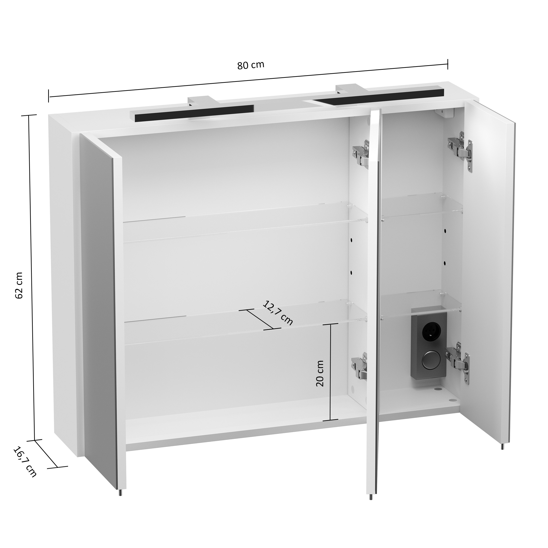 Spiegelschrank (H/B/T) 62/80/17 cmTechnische Daten: