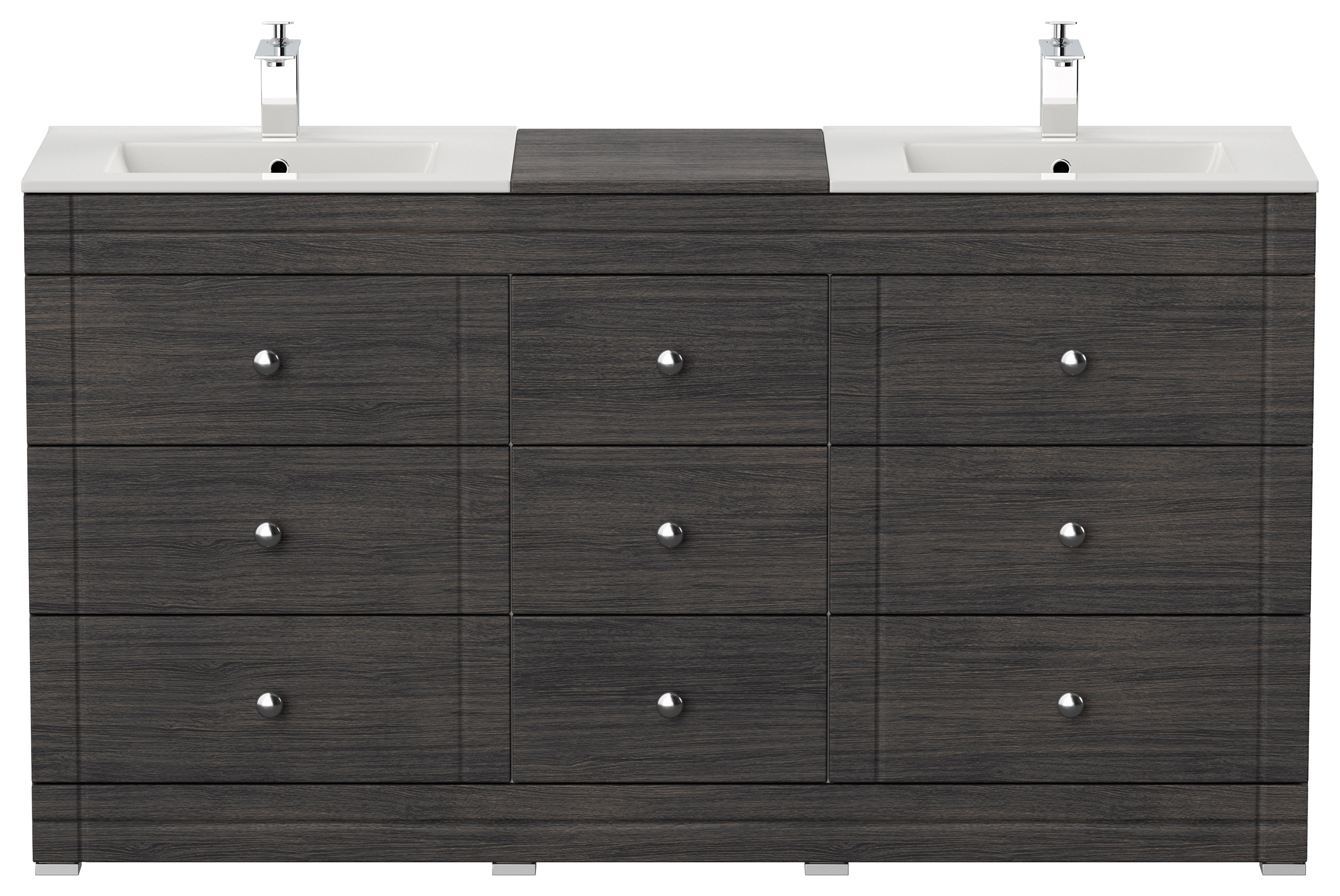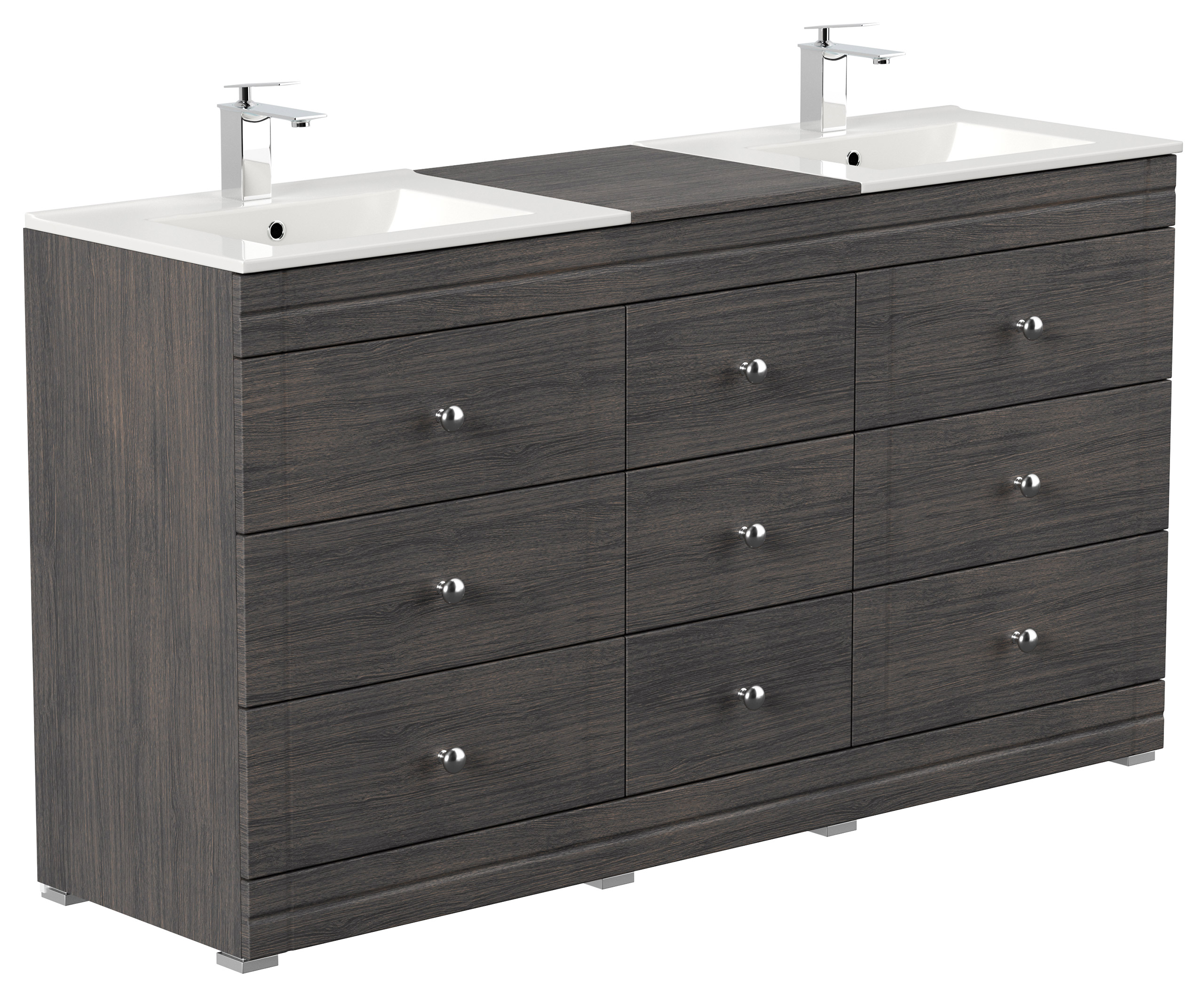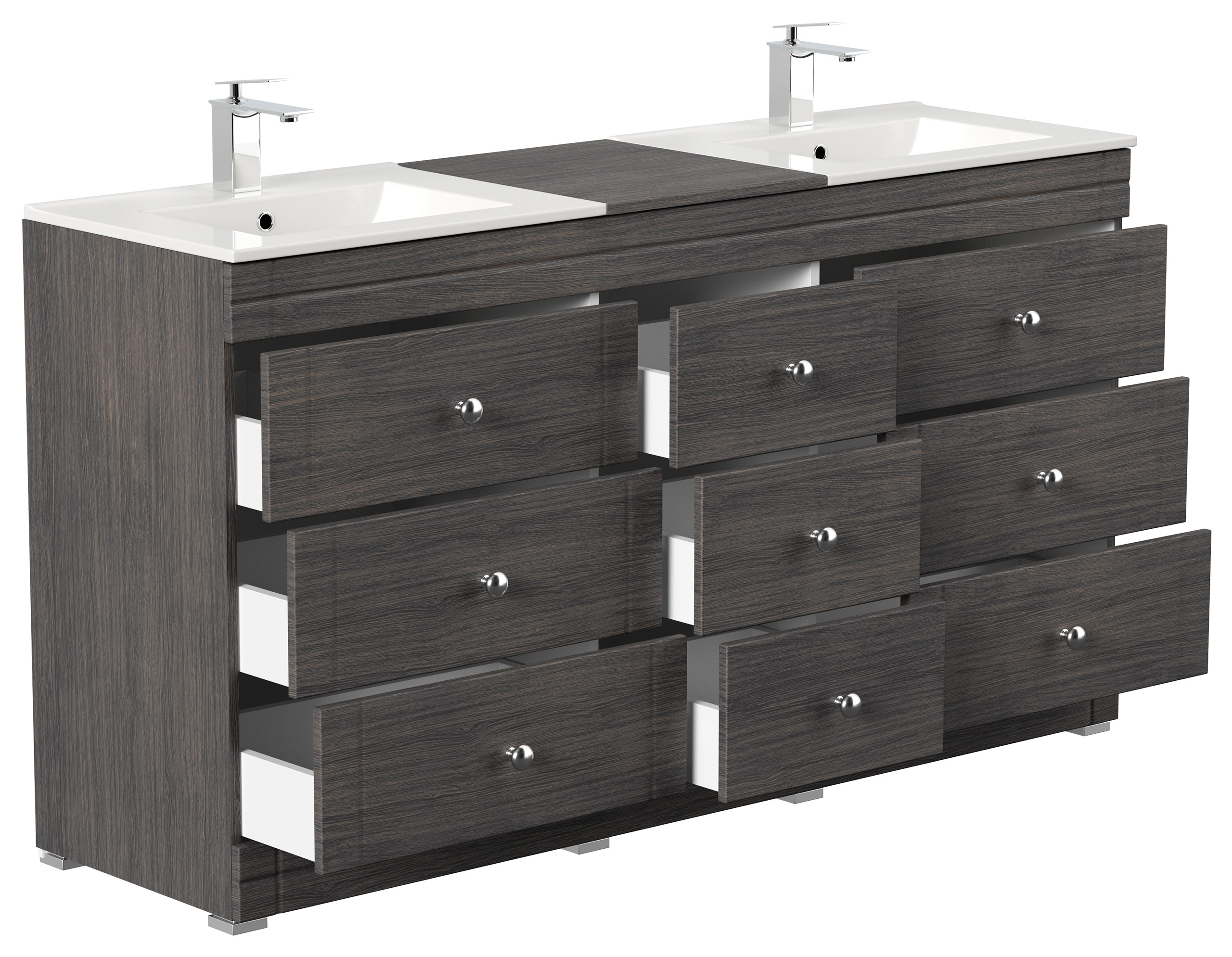 Badmöbel Doppelwaschtisch als Badezimmerblock stehend in der Farbe Anthrazit gemasert mit sensationell großem Stauraum durch 9 Softclose-Schubladen inkl. zwei Keramikwaschbecken!