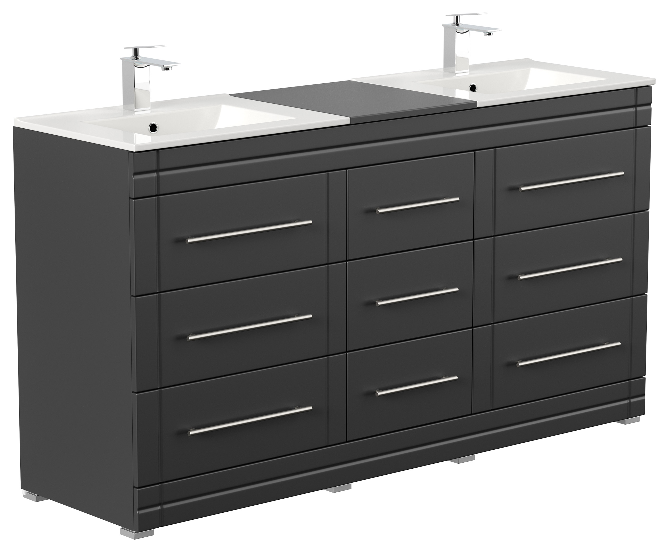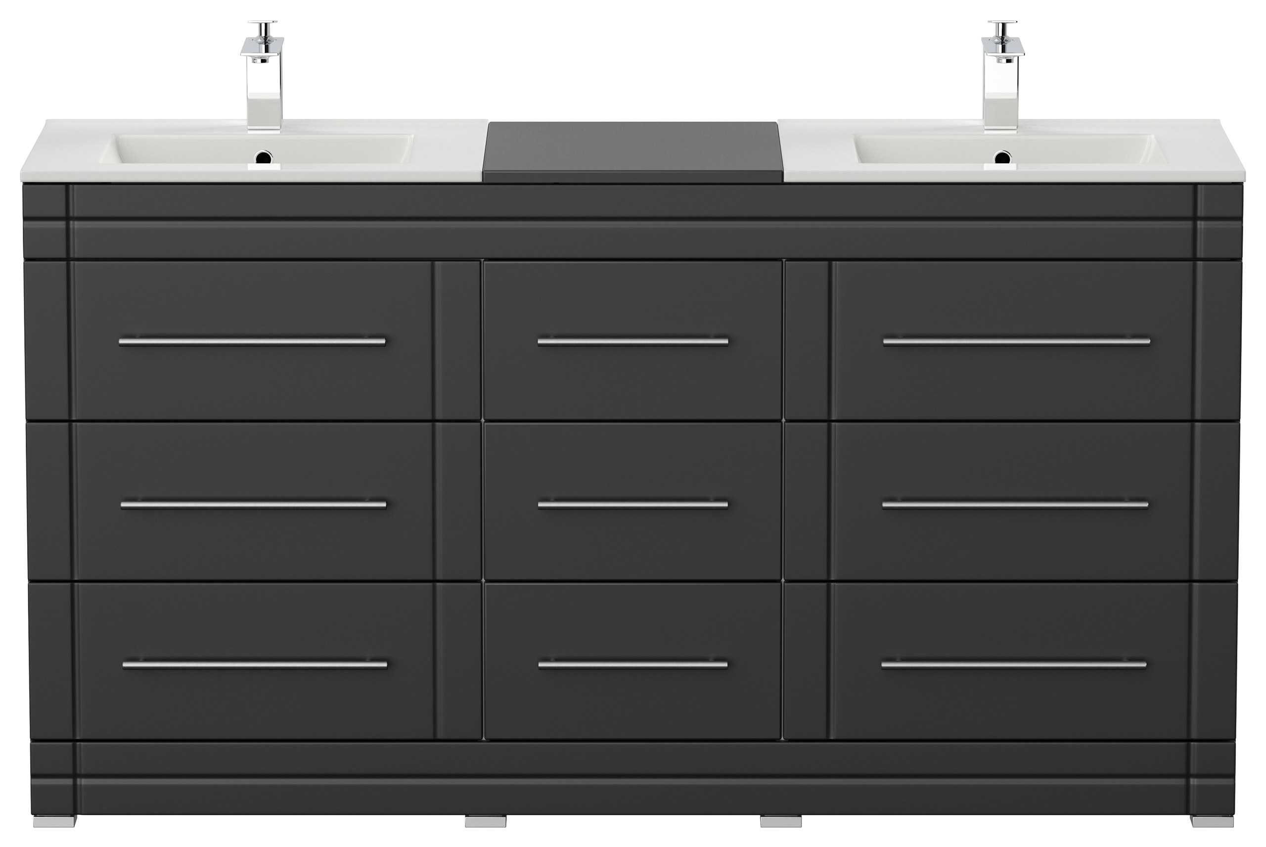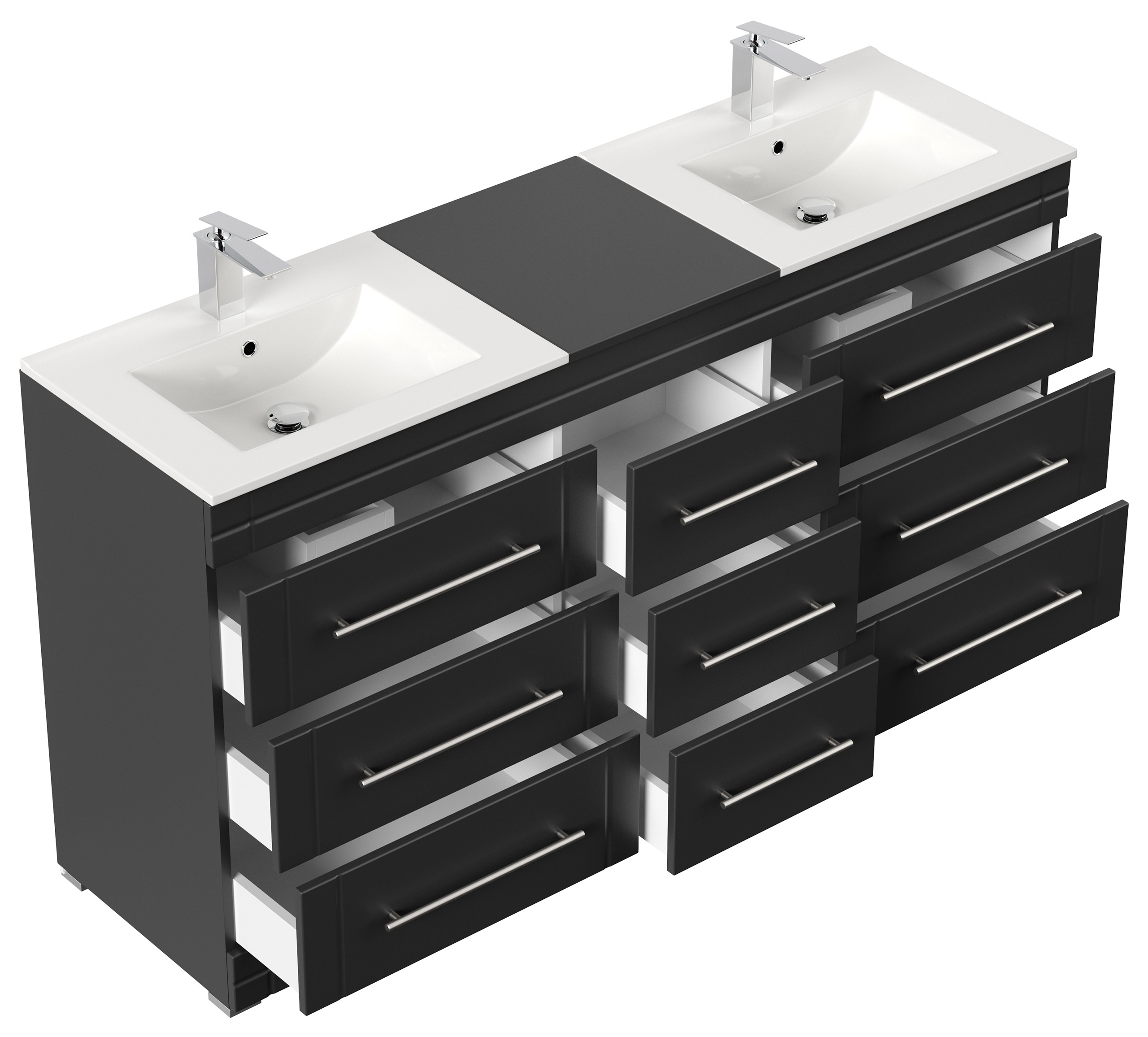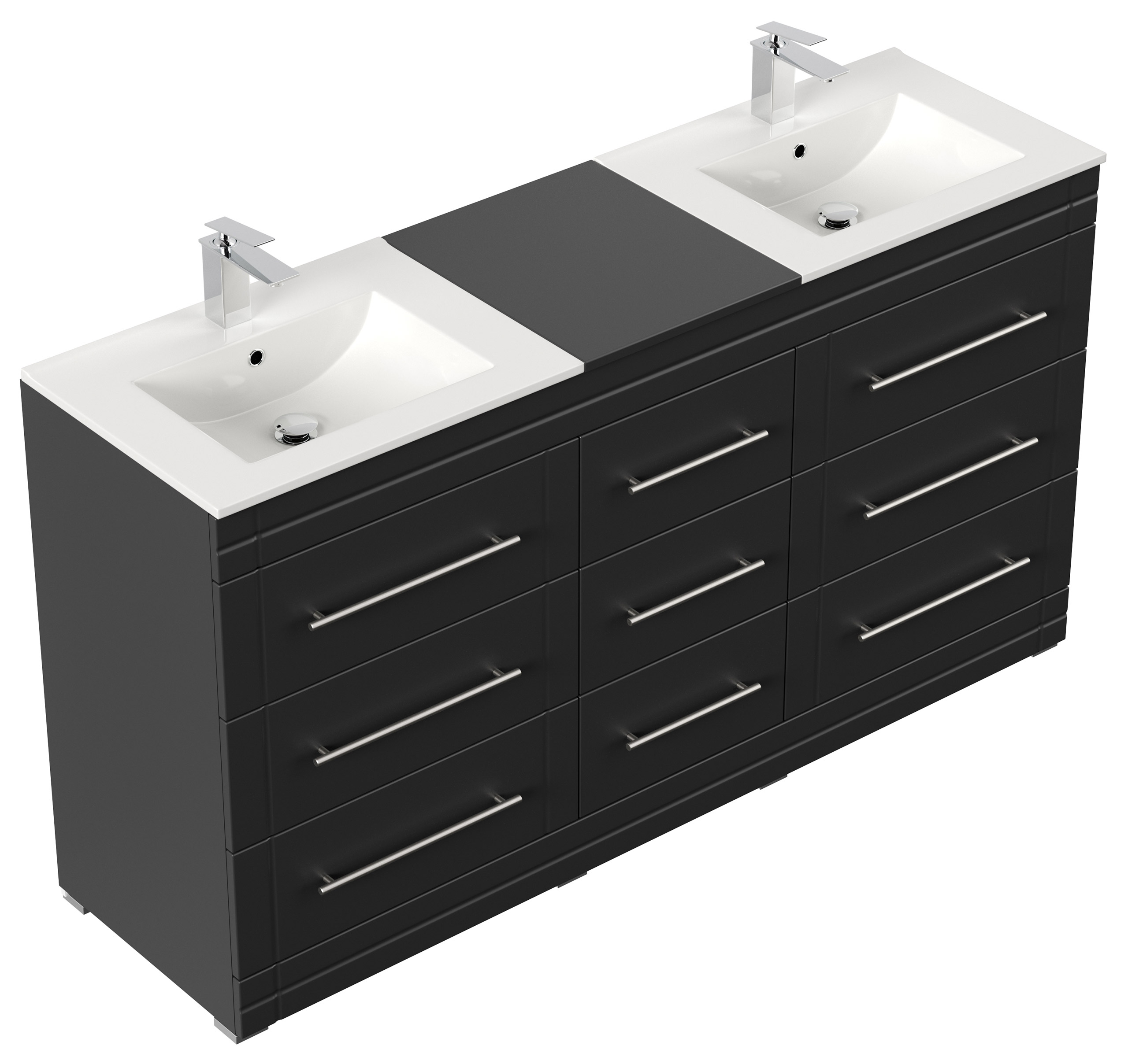 Stand Badmöbel Cosmo Modern Schwarz seidenglanz Stand Badmöbel Cosmo Modern 9 Schubladen mit dekorativen Einfräsungen und aus matt gebürstetem Edelstahl gefertigten Griffen