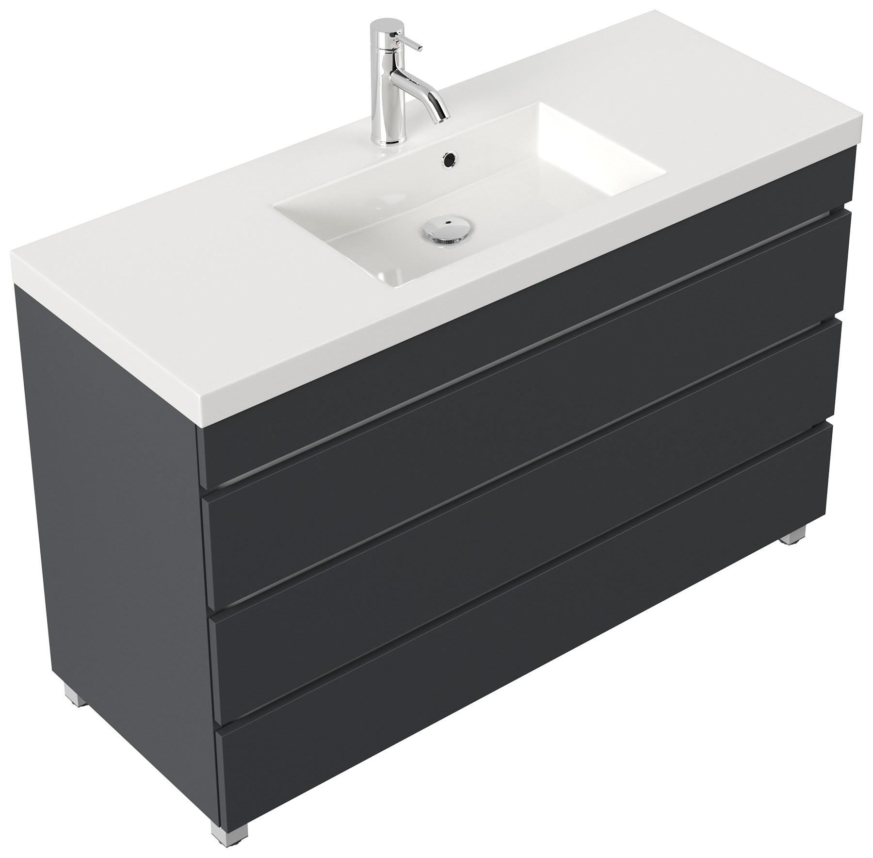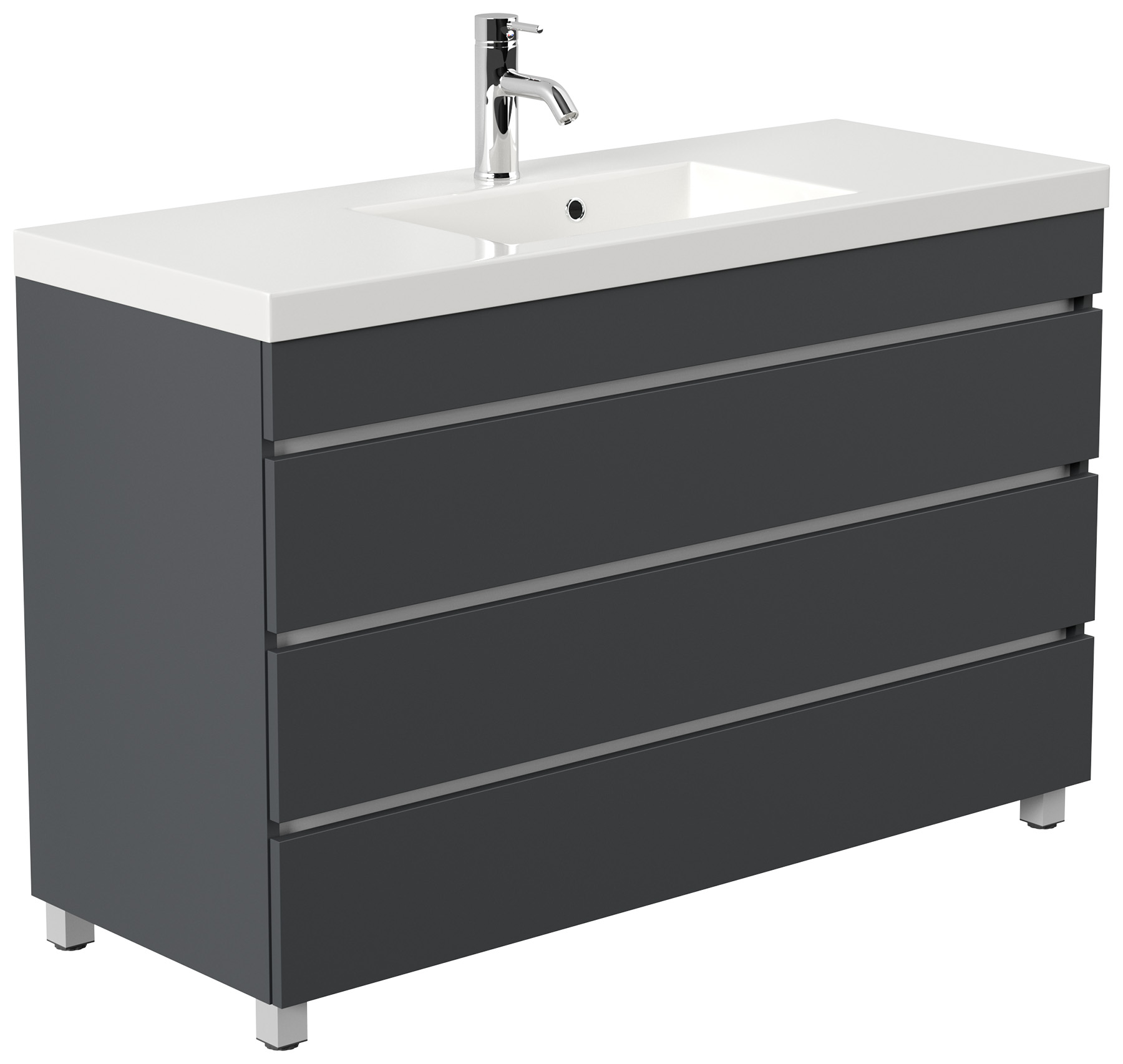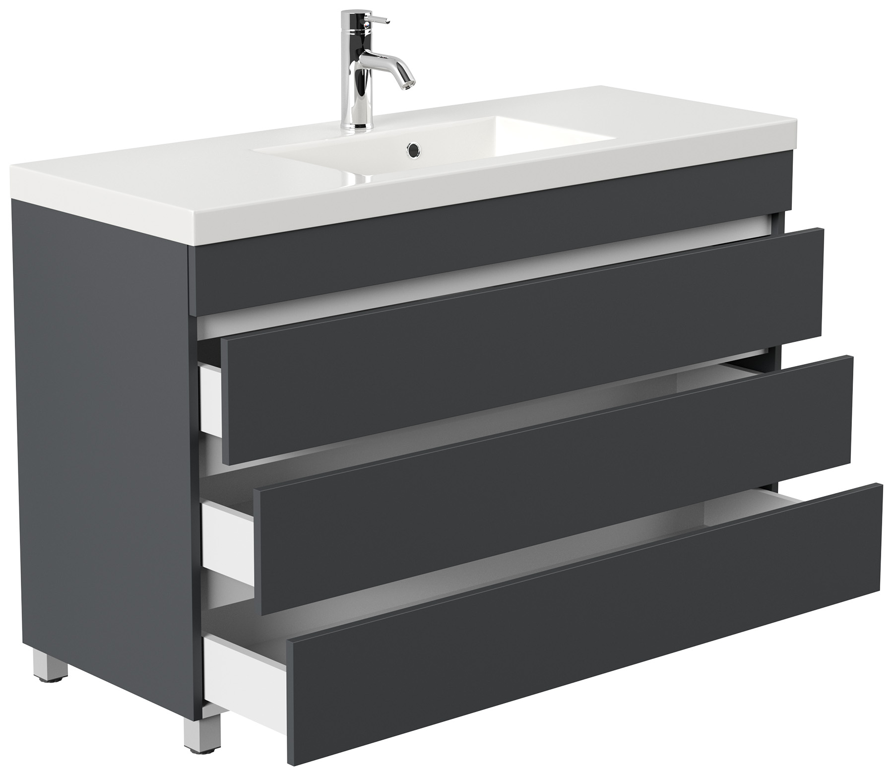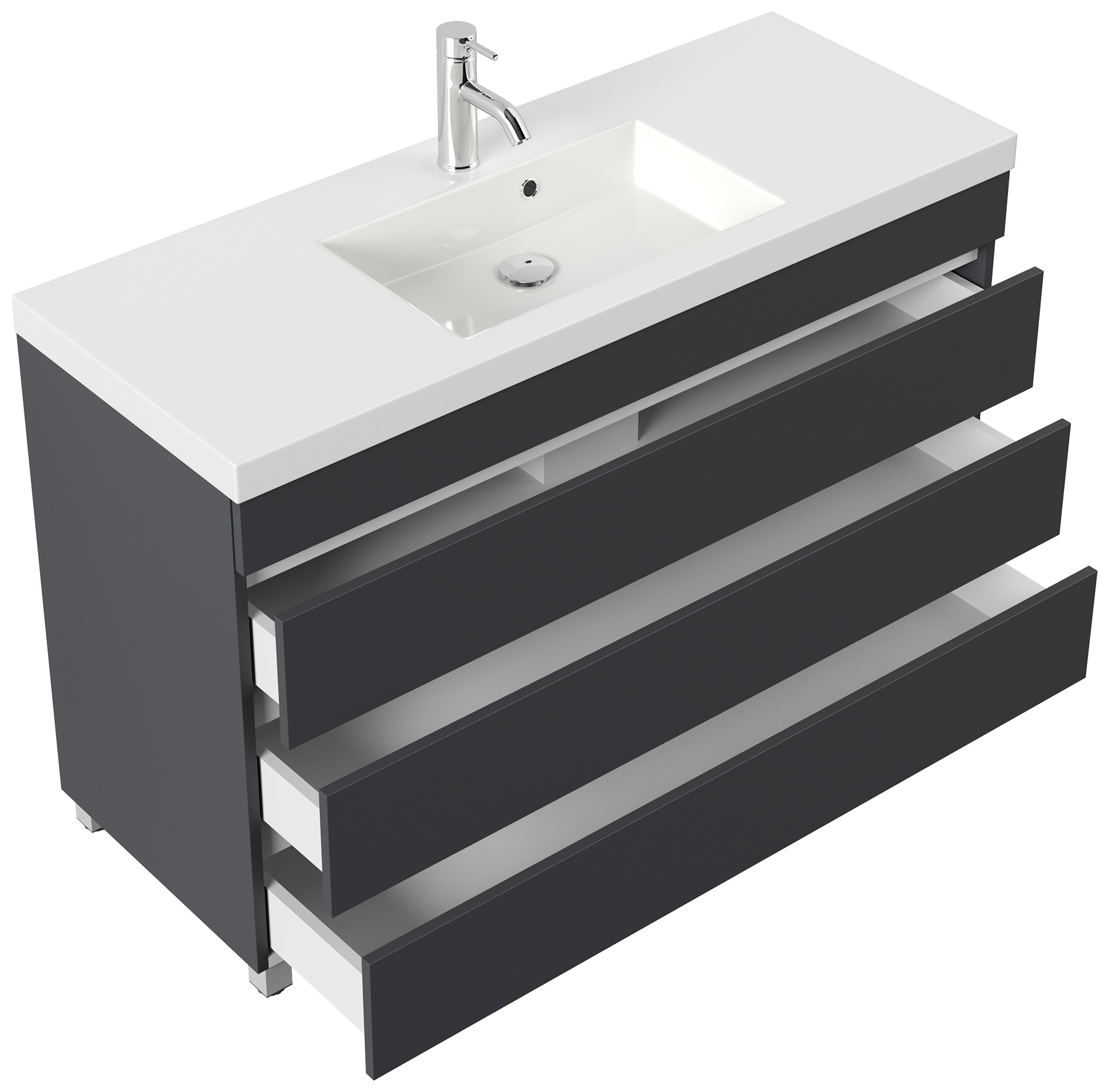 Stand Badmöbel GENEVA 120 SoftClose grafit mit 3 grifflosen Schubladen