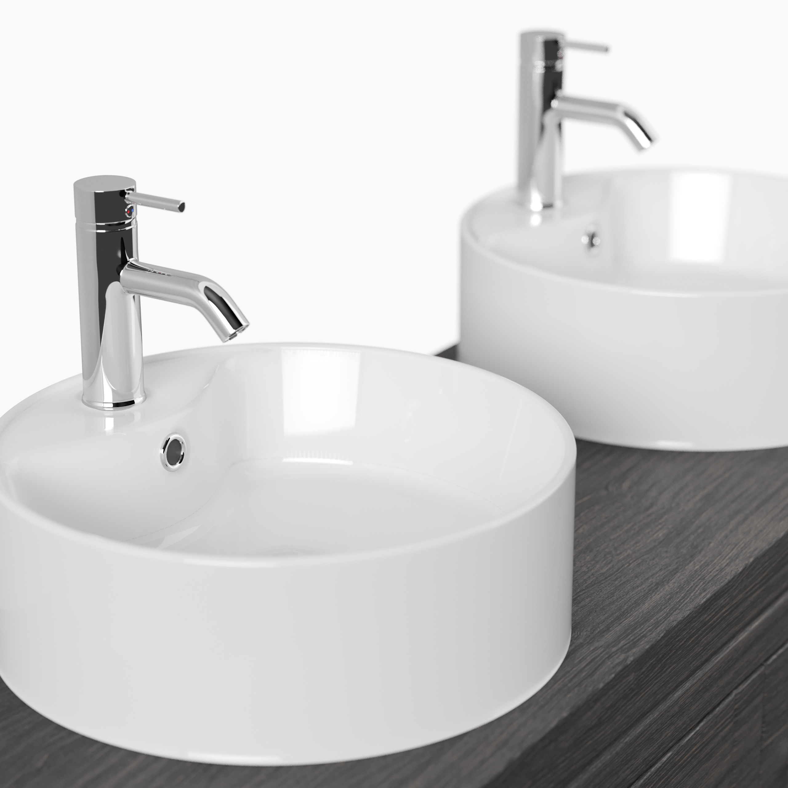 - 2 runde Keramik-Waschbecken.