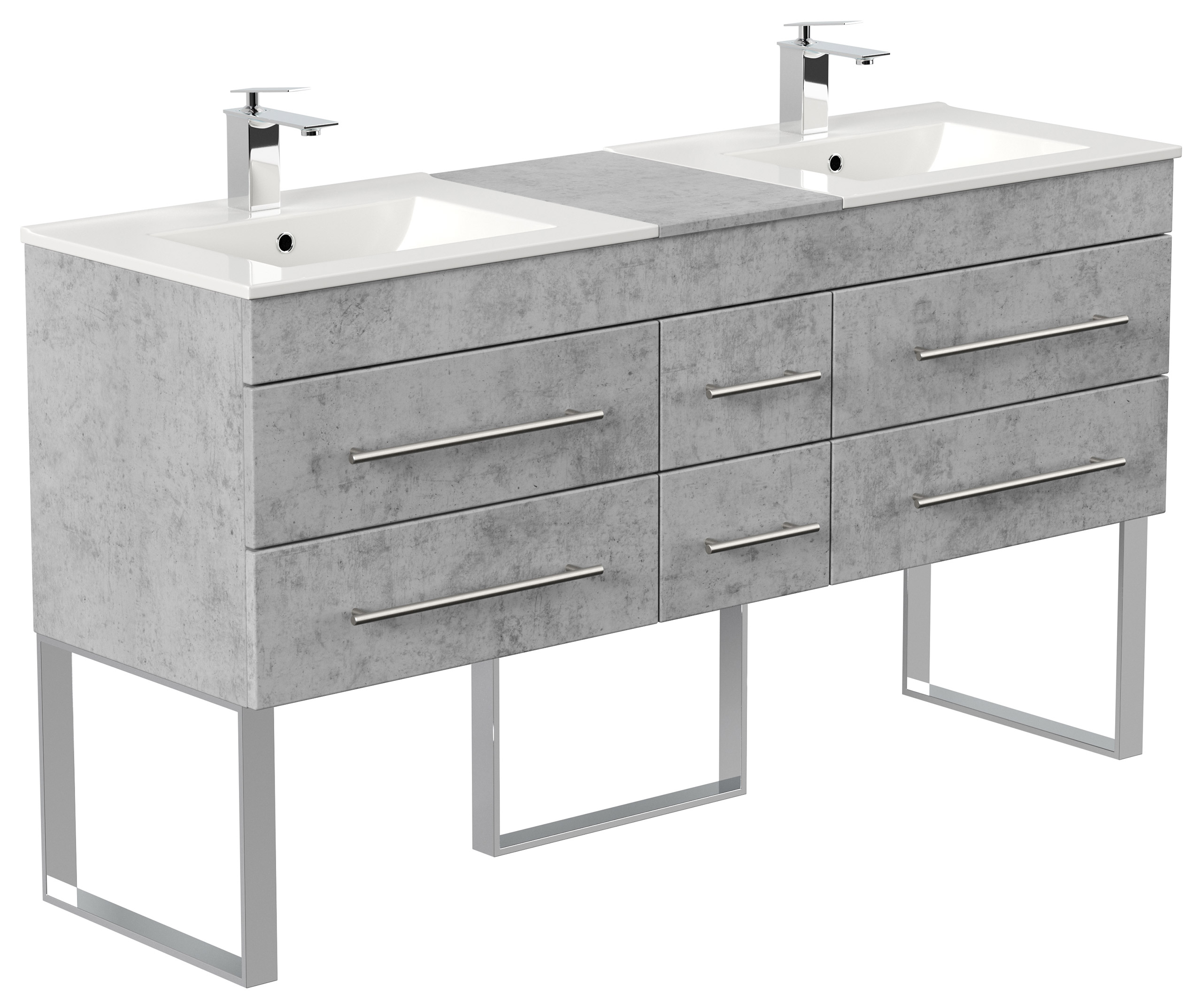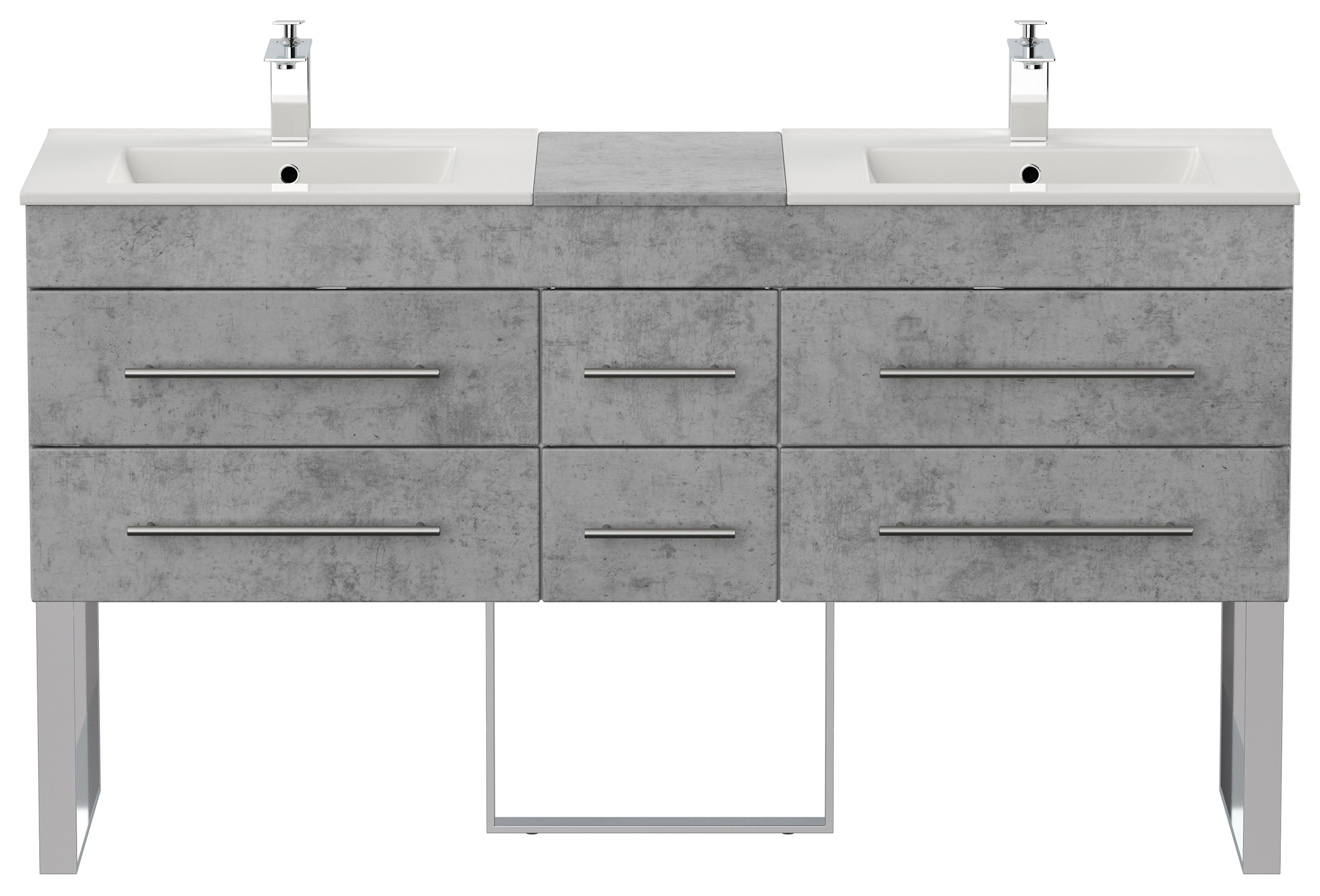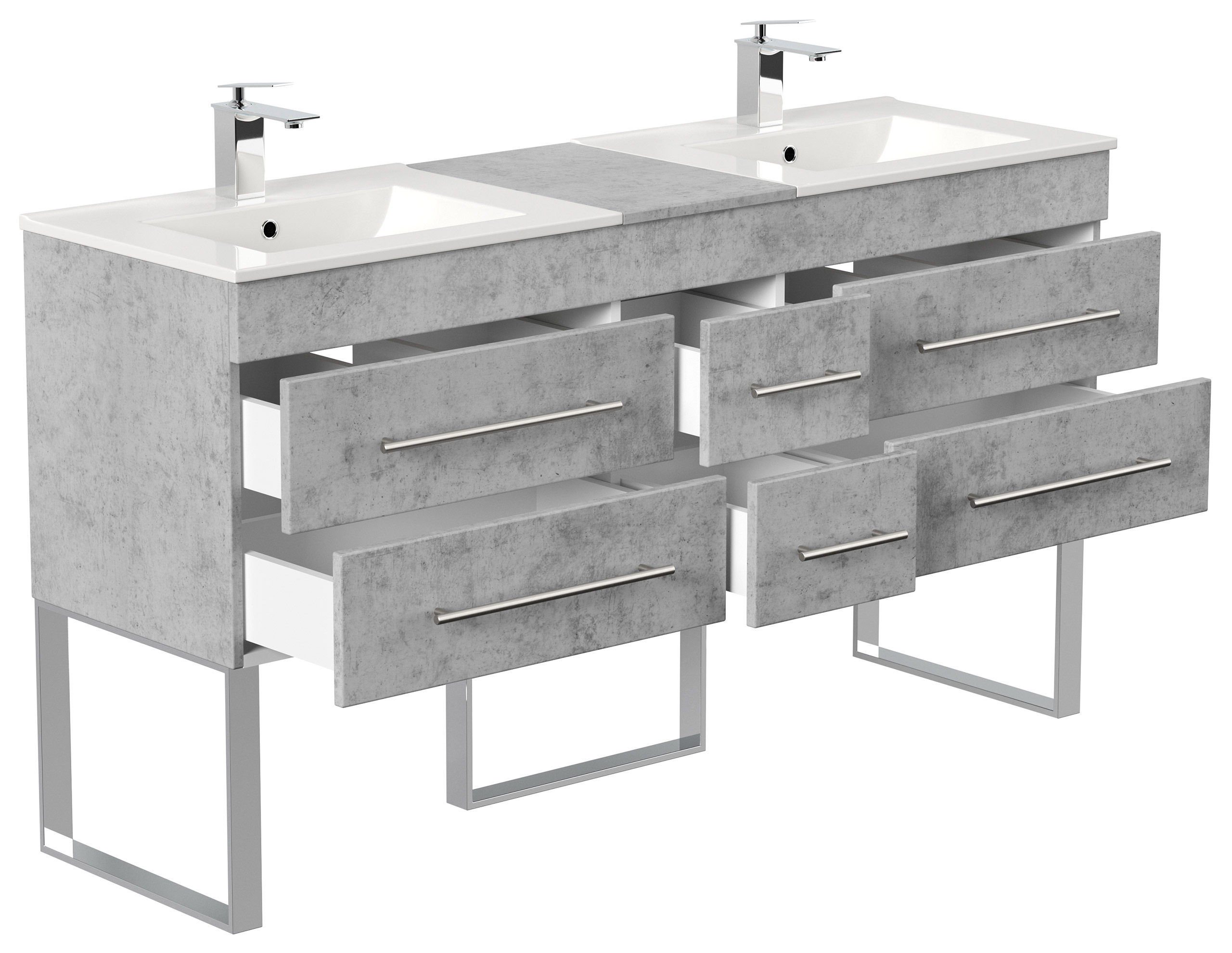 Stand Badmöbel inkl. Keramik-Waschbecken (B/H/T) 153/86/47 cm,Waschtischunterschrank ohne Becken u. ohne Standfüße (B/H/T) 150,2/49,6/46,5cm,