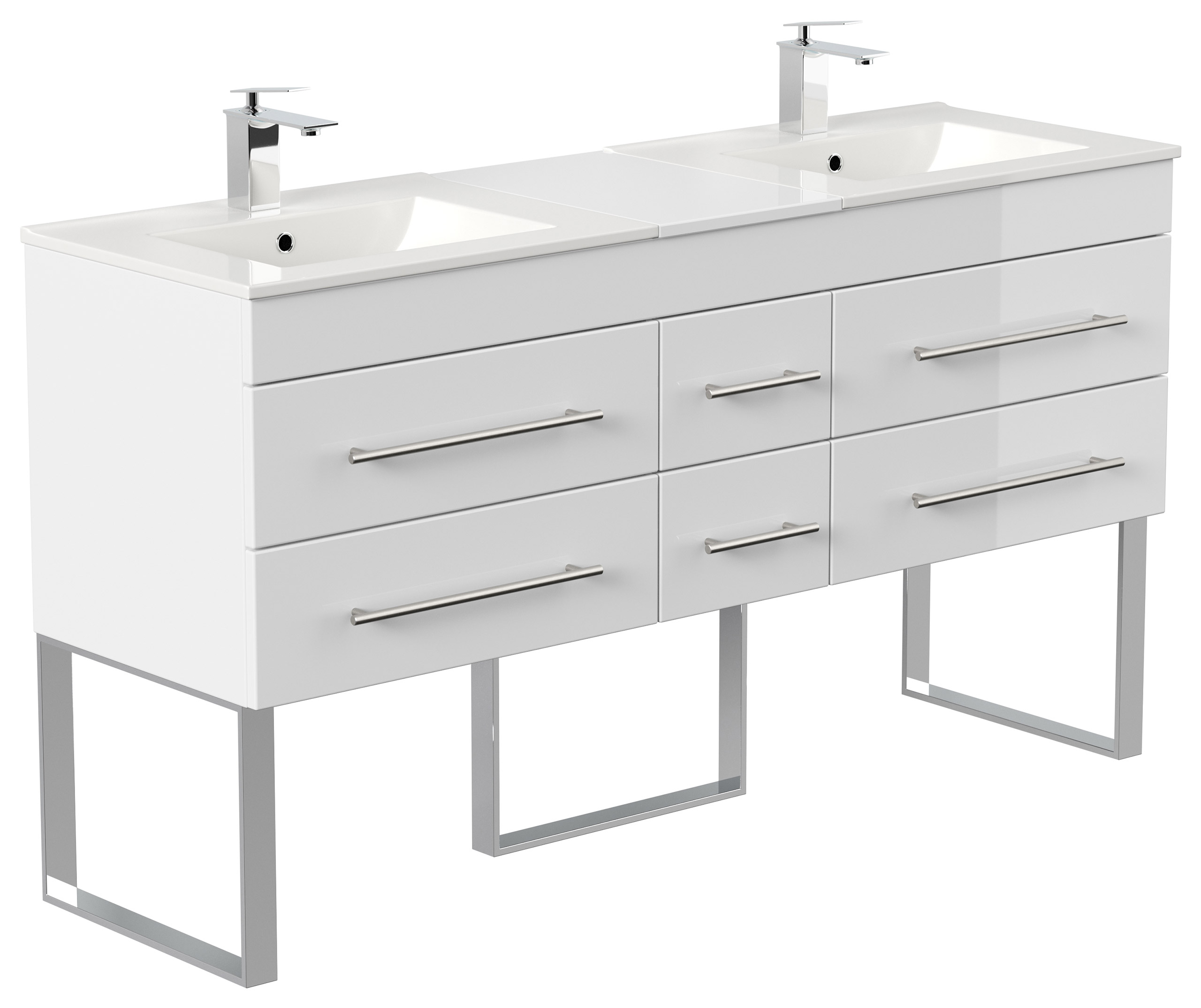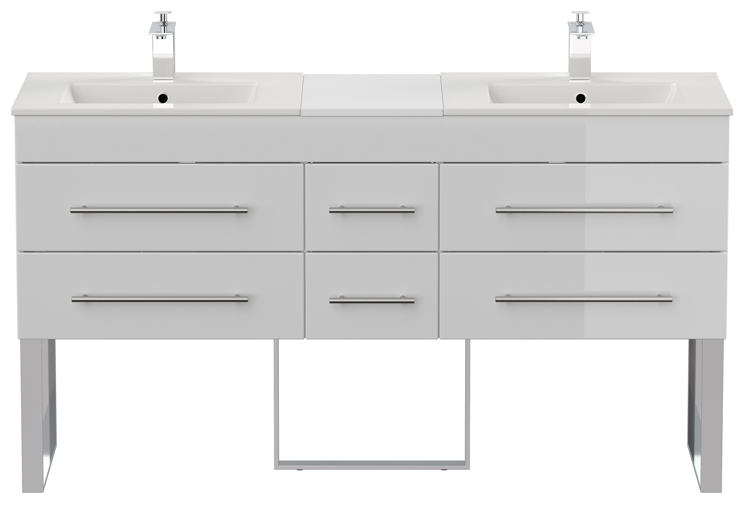 Stand Badmöbel inkl. Keramik-Waschbecken (B/H/T) 153/86/47 cm,Waschtischunterschrank ohne Becken u. ohne Standfüße (B/H/T) 150,2/49,6/46,5cm,