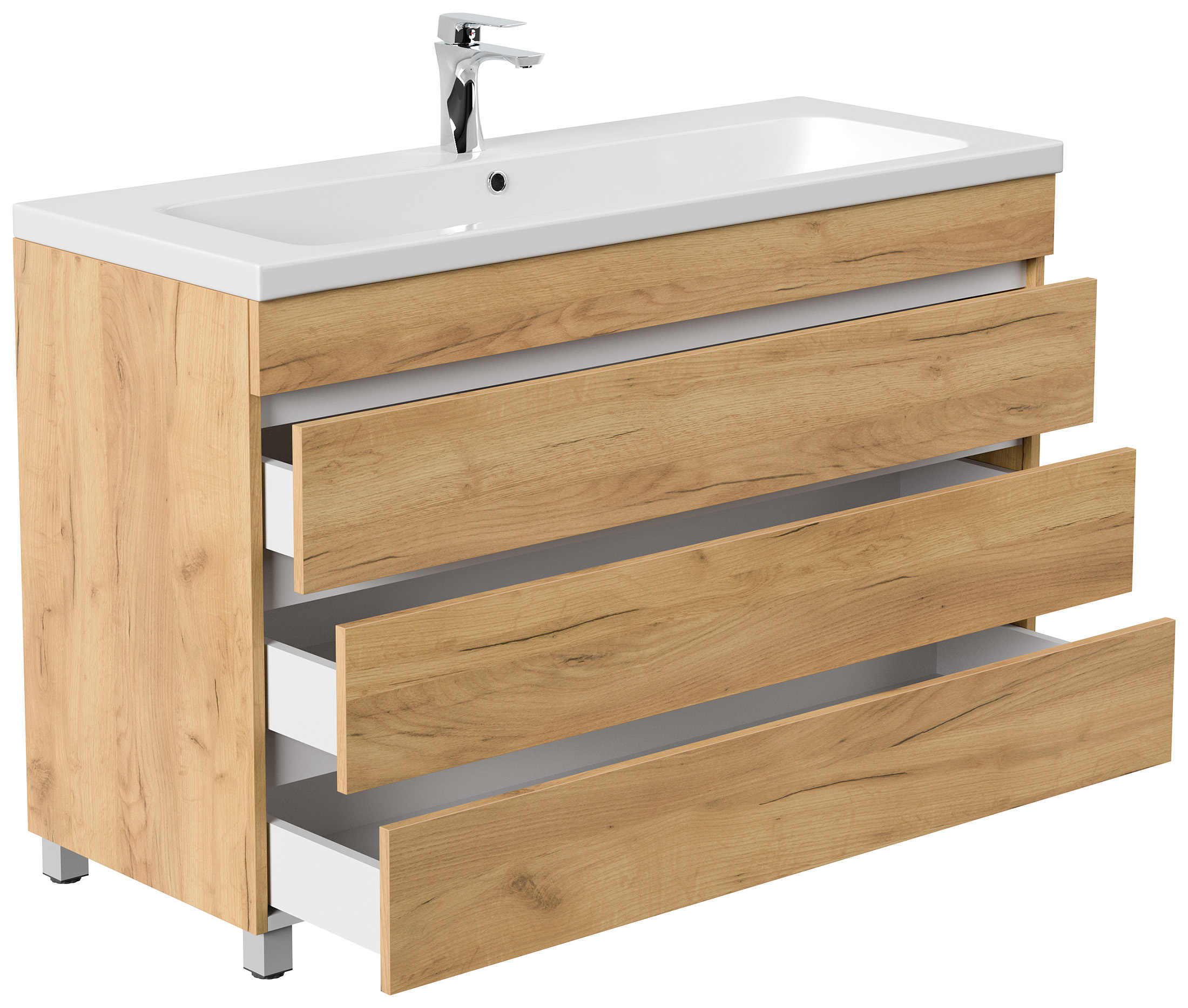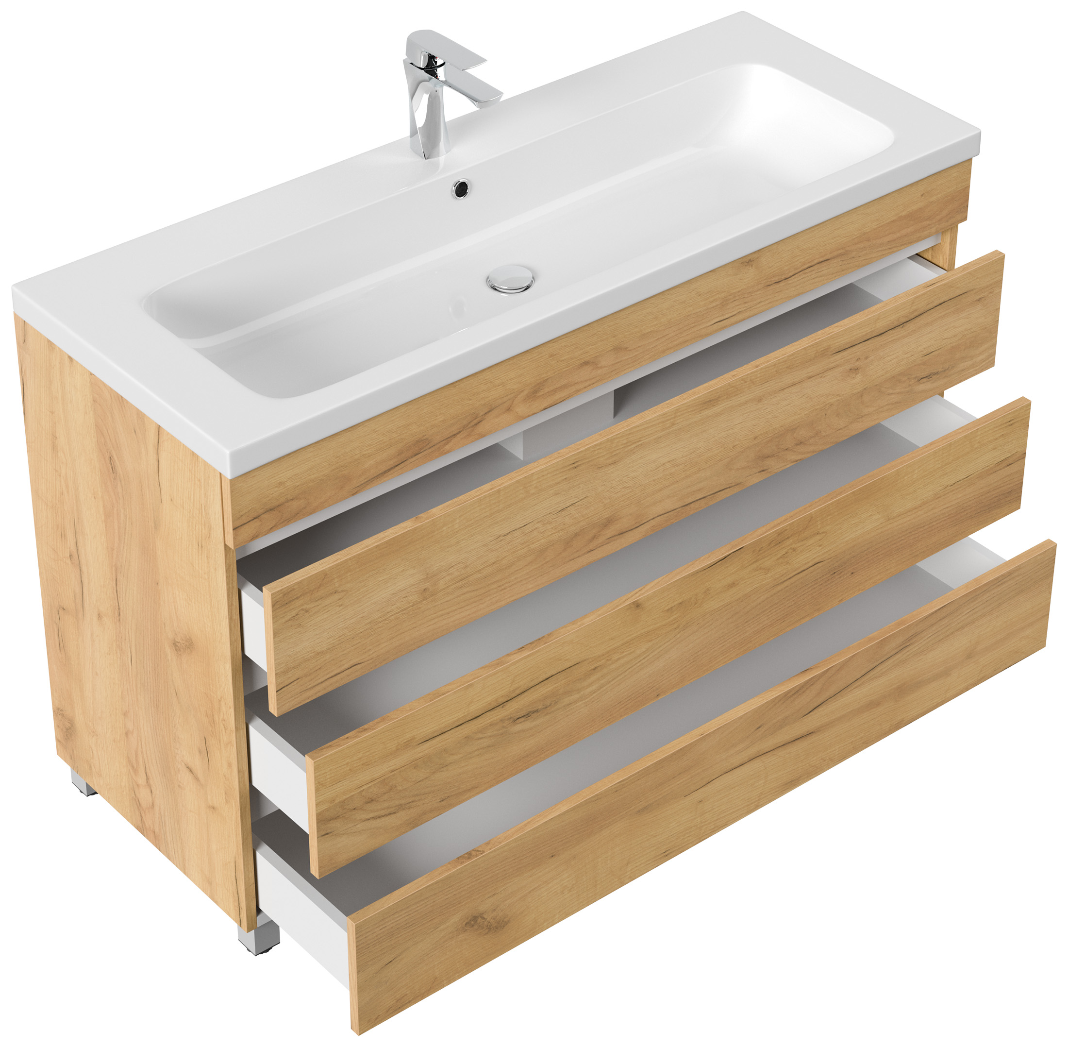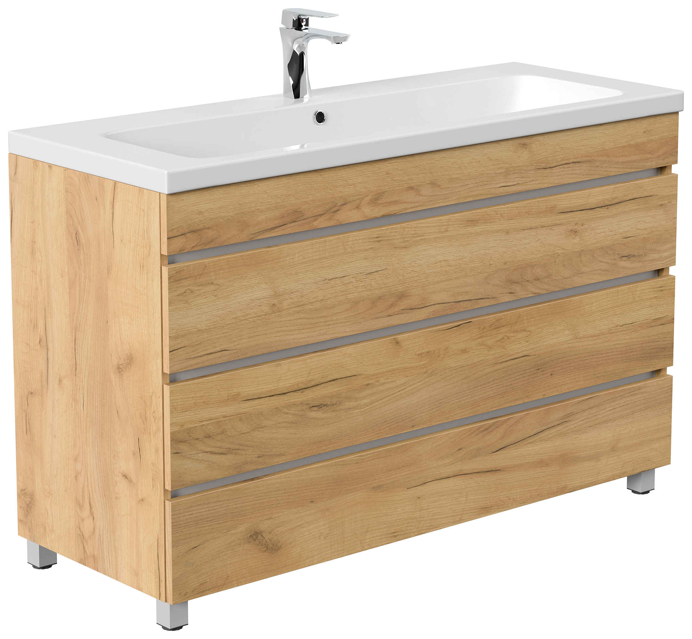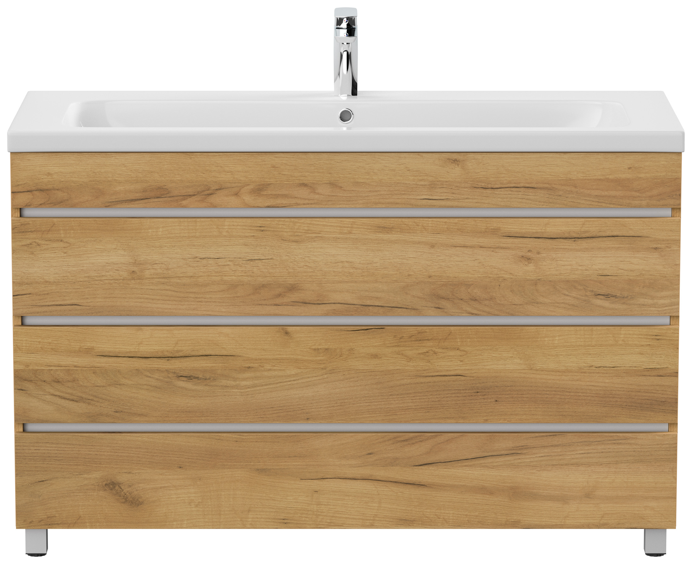 Stand Badmöbel Via 120 SoftClose eiche gold mit 3 grifflosen Schubladen