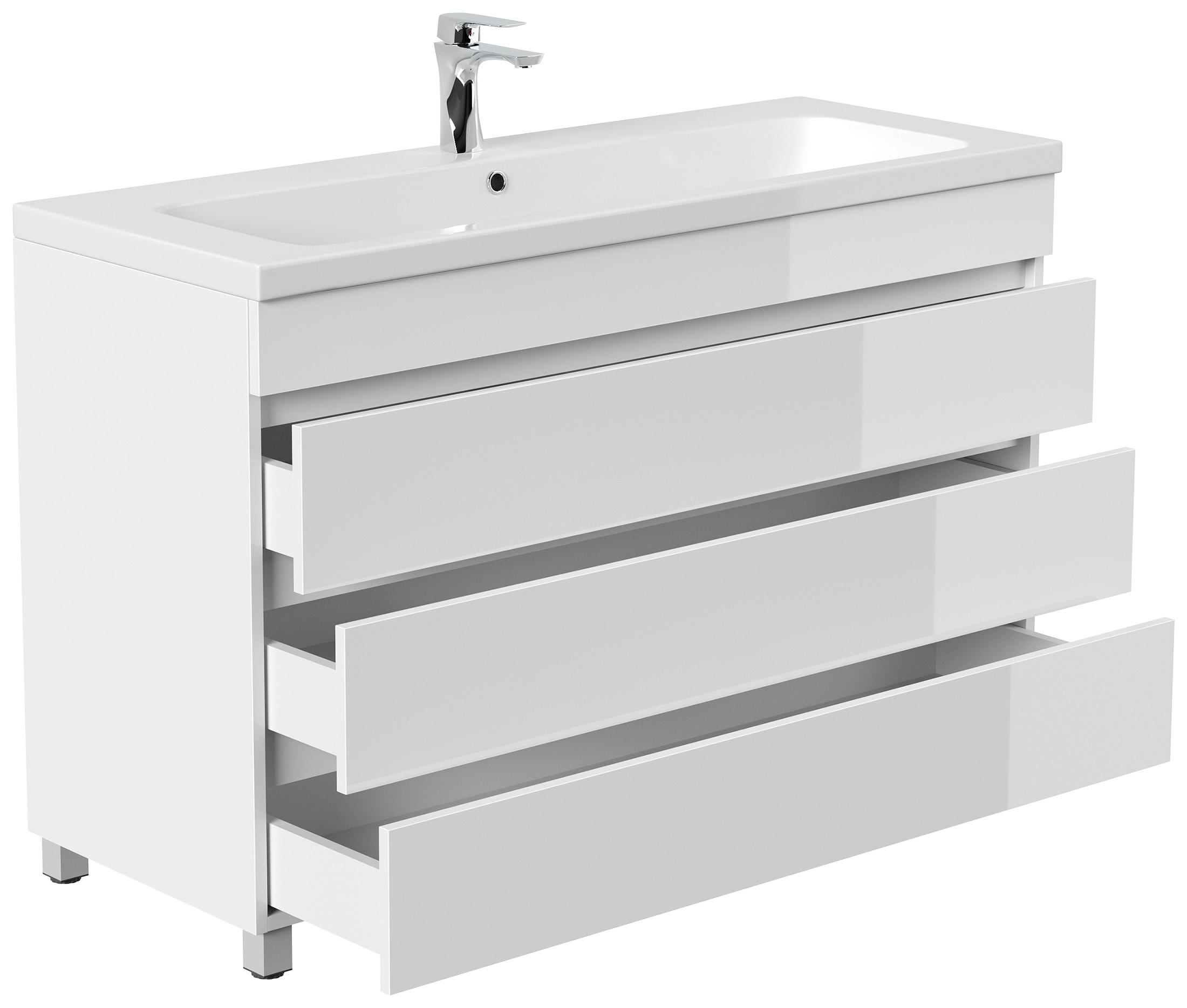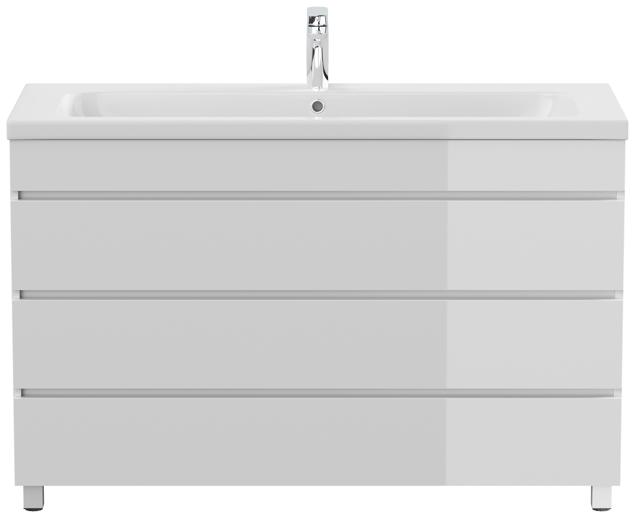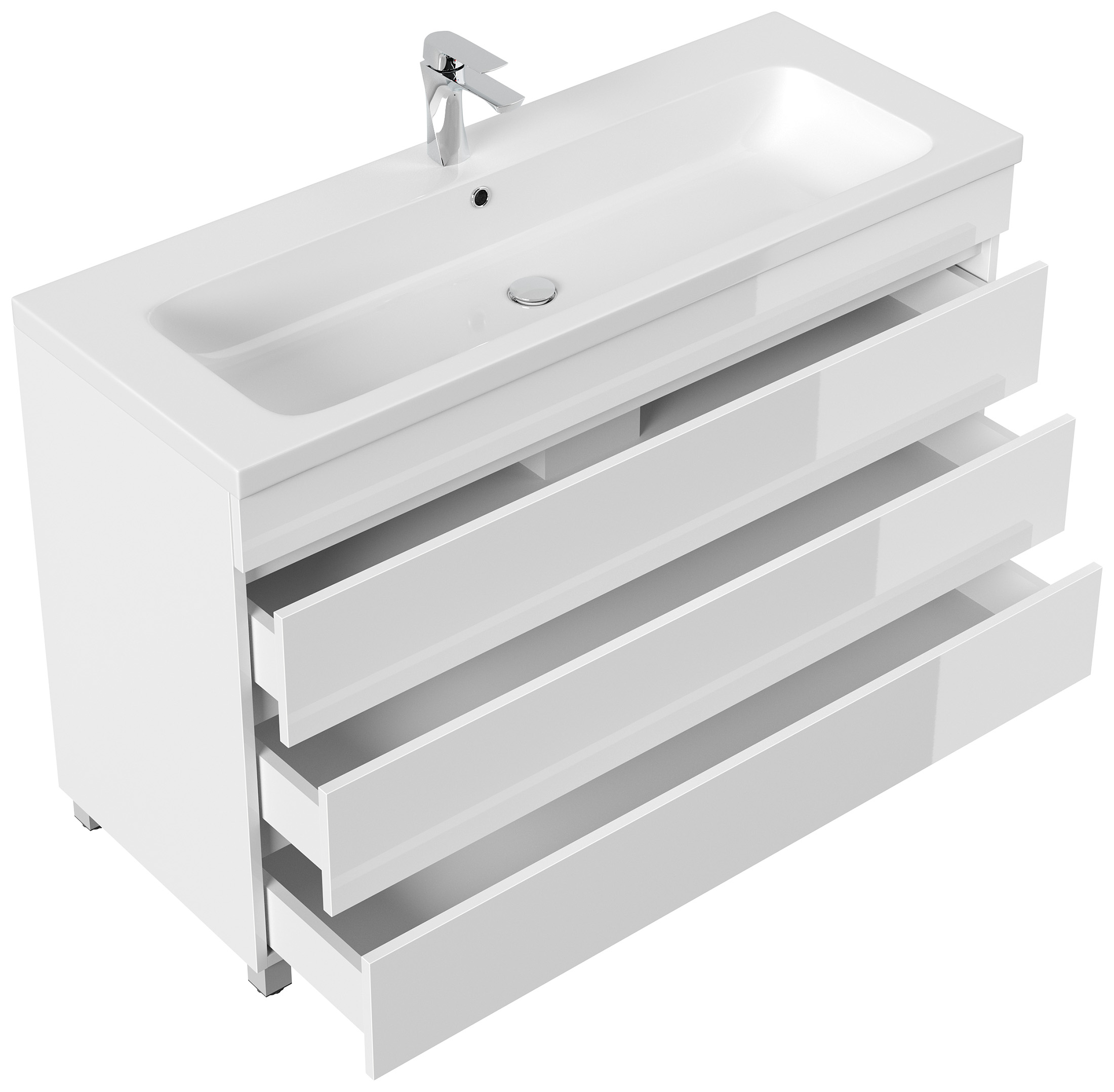 Stand Badmöbel Via 120 SoftClose weiss hochglanz mit 3 grifflosen Schubladen