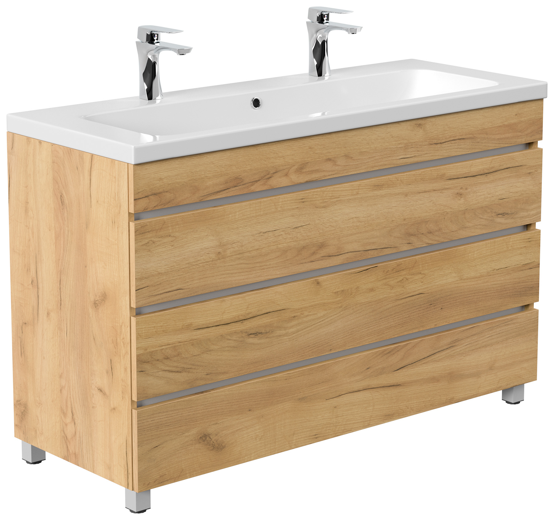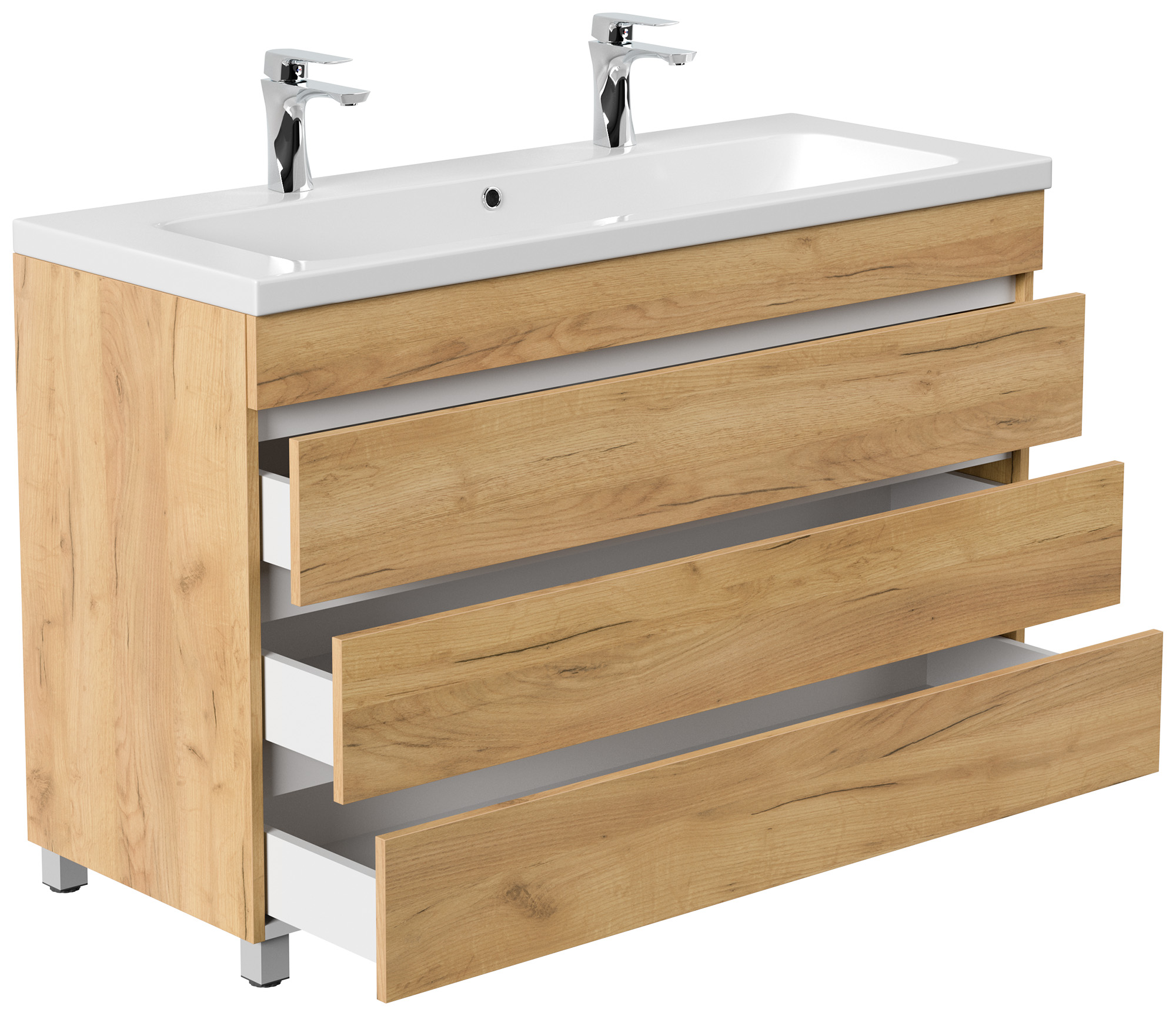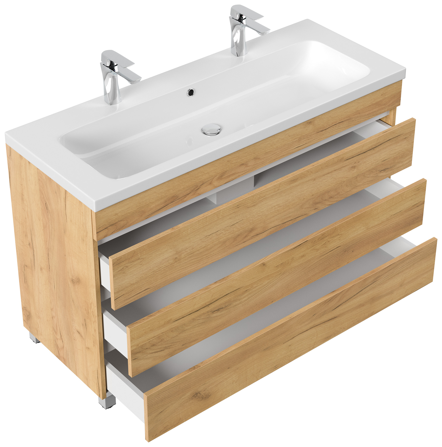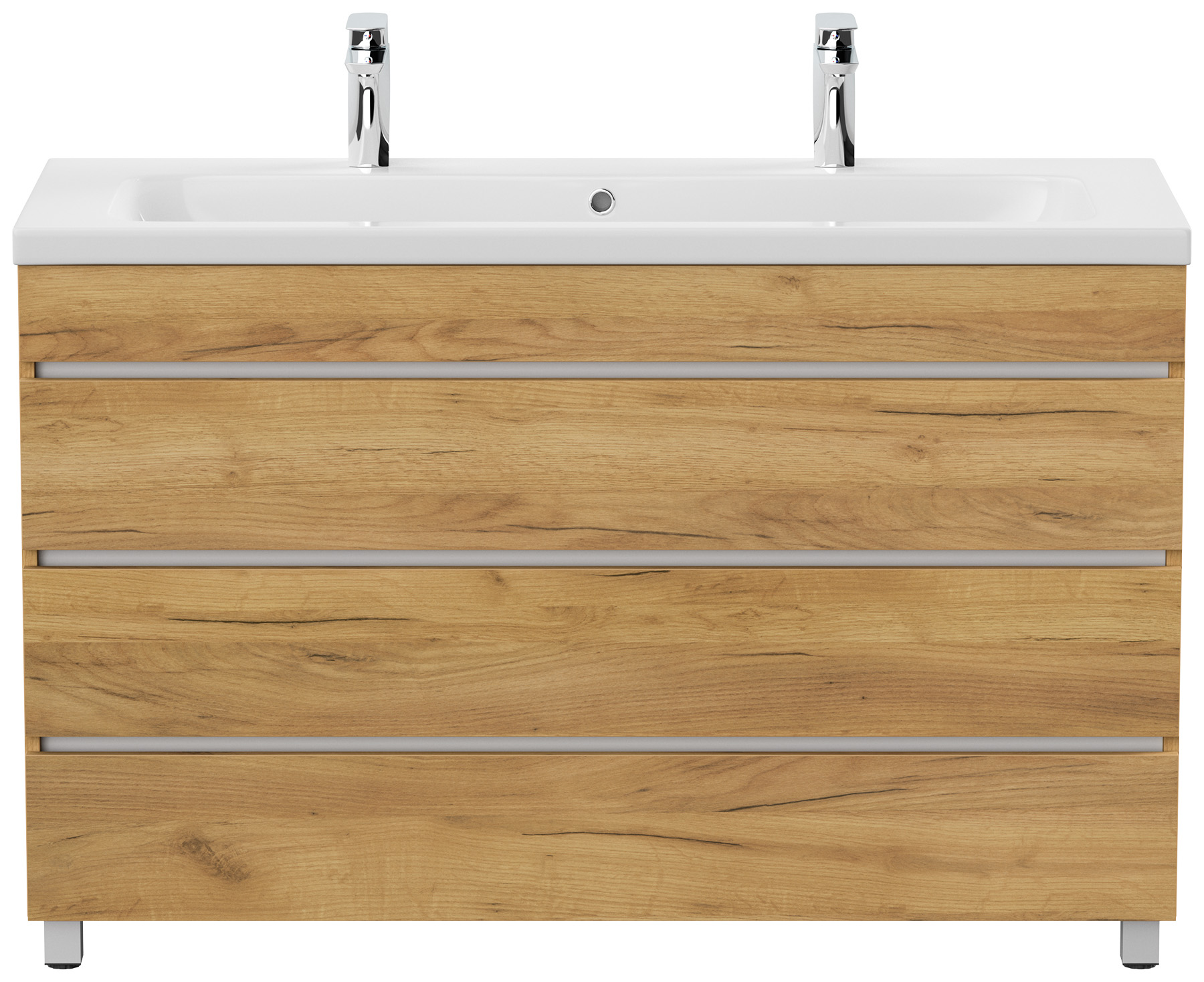 Stand Doppel Badmöbel Via 120 eiche gold mit 3 grifflosen Schubladen
