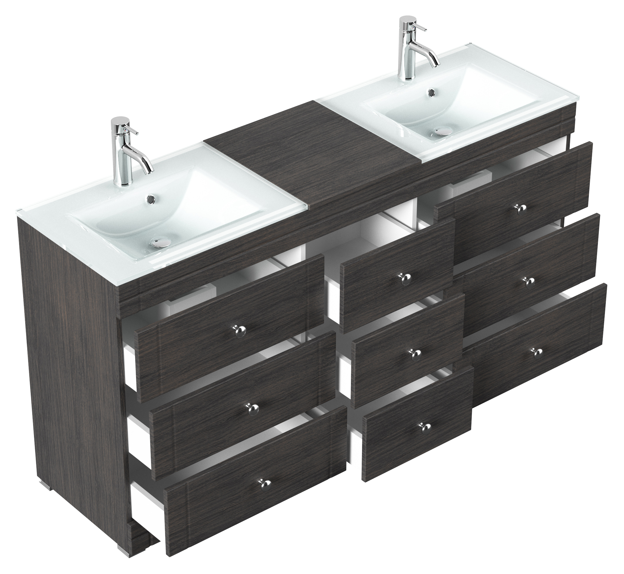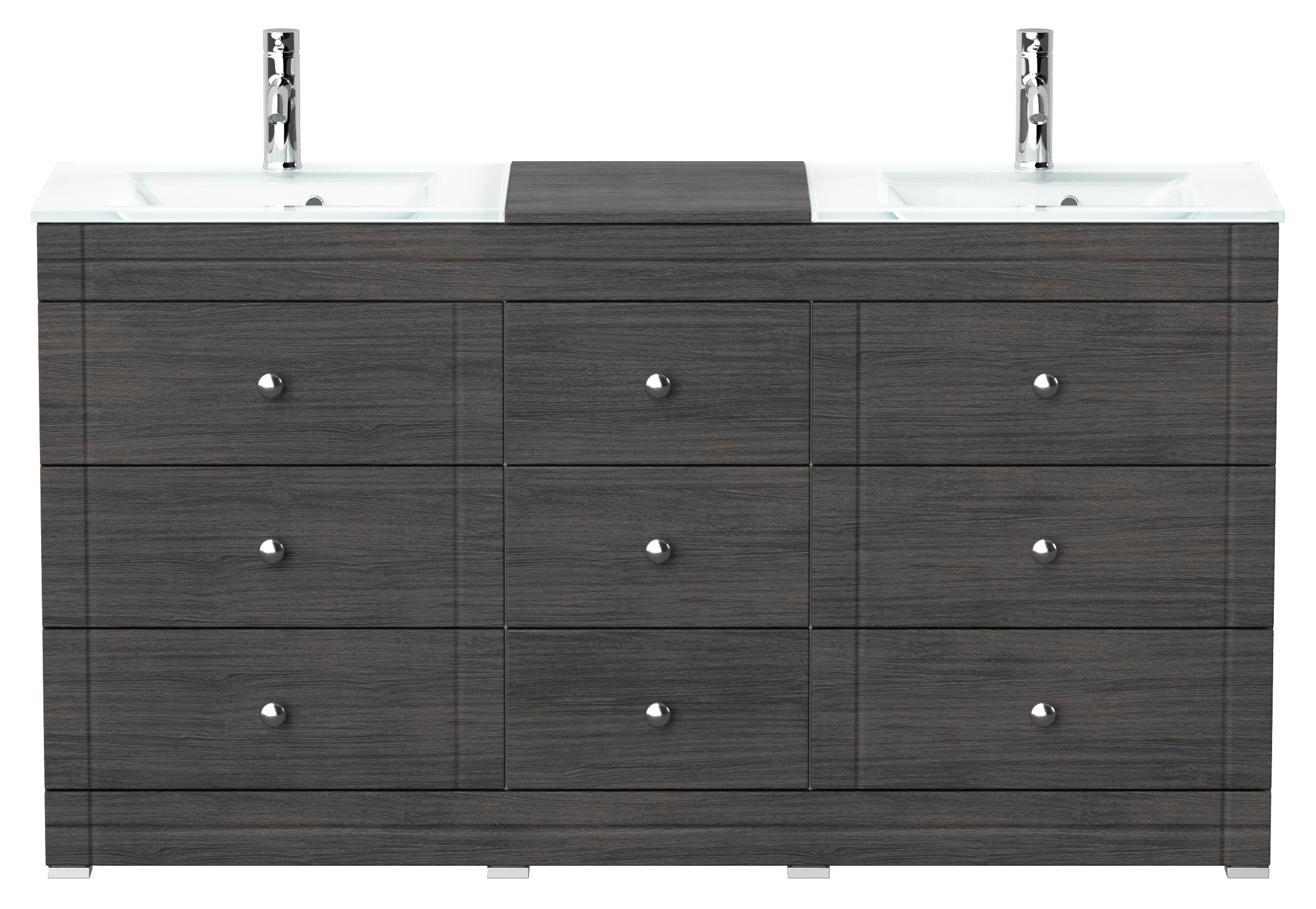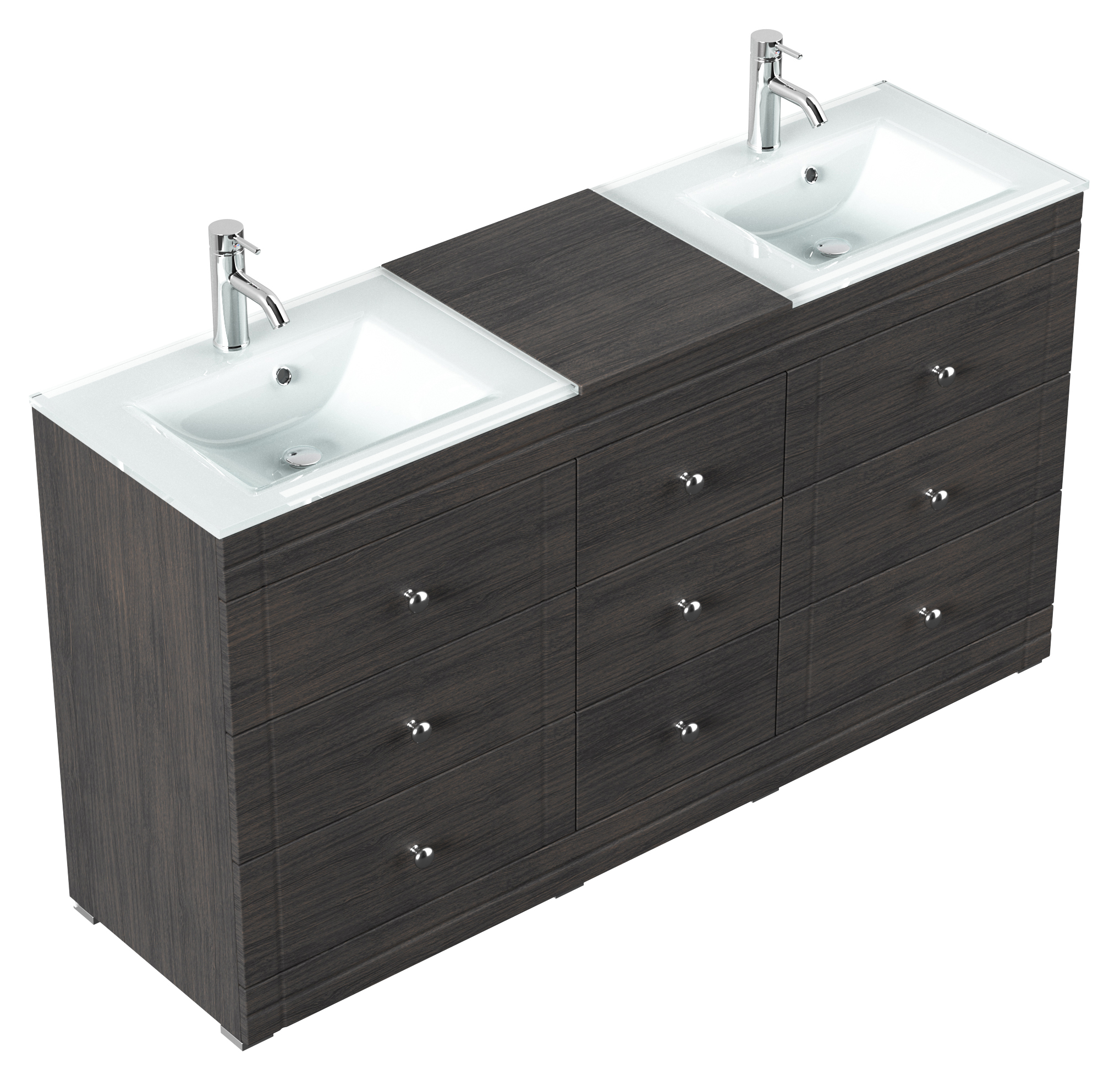 Stand Doppel Badmöbel Vitro Klassik inkl. Glasbecken anthrazit gemasert